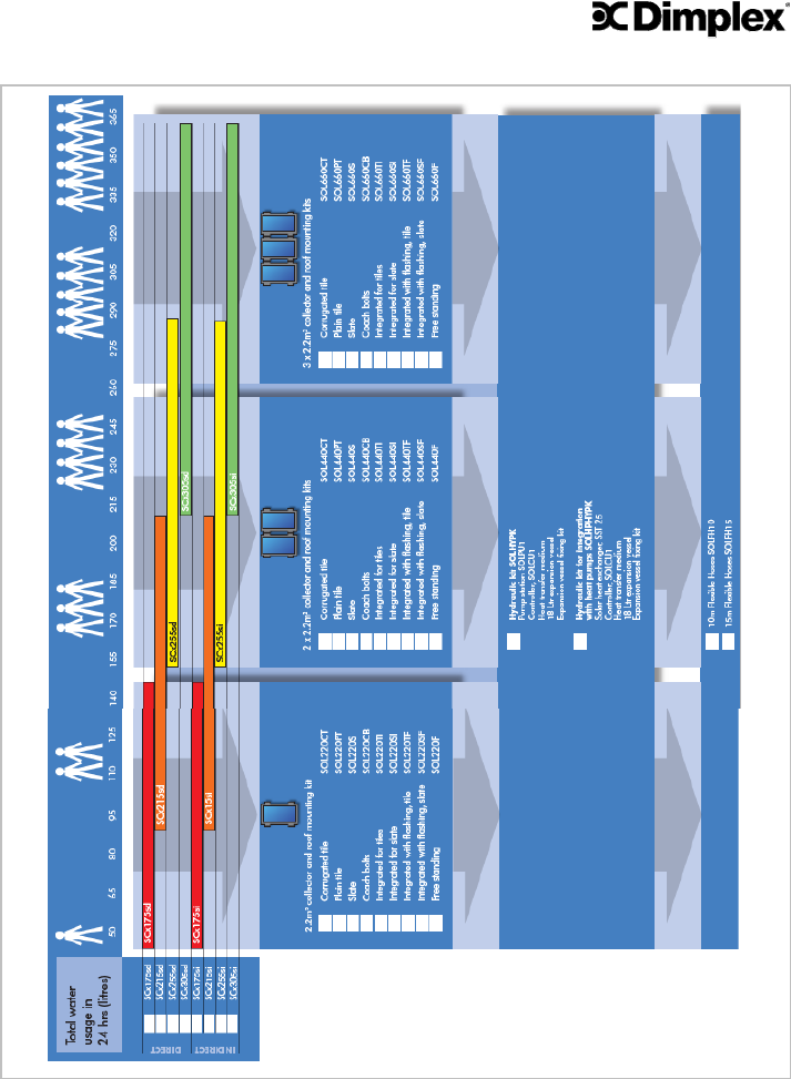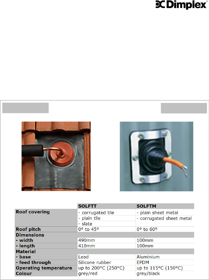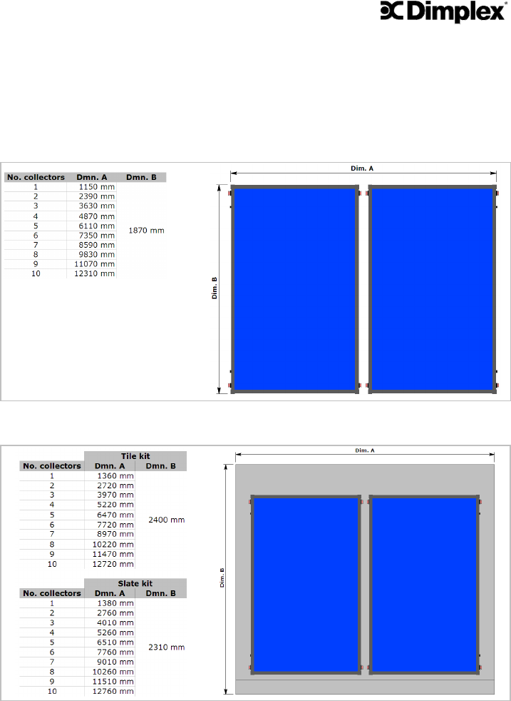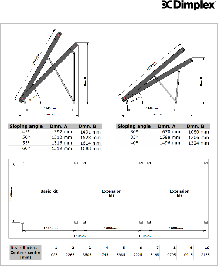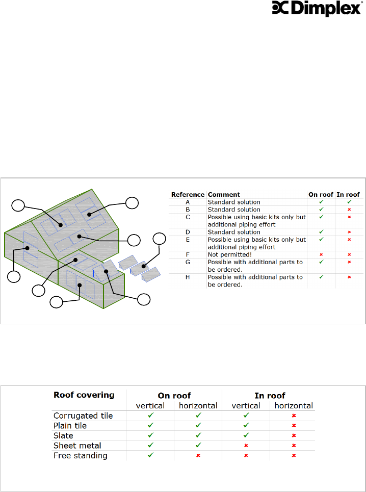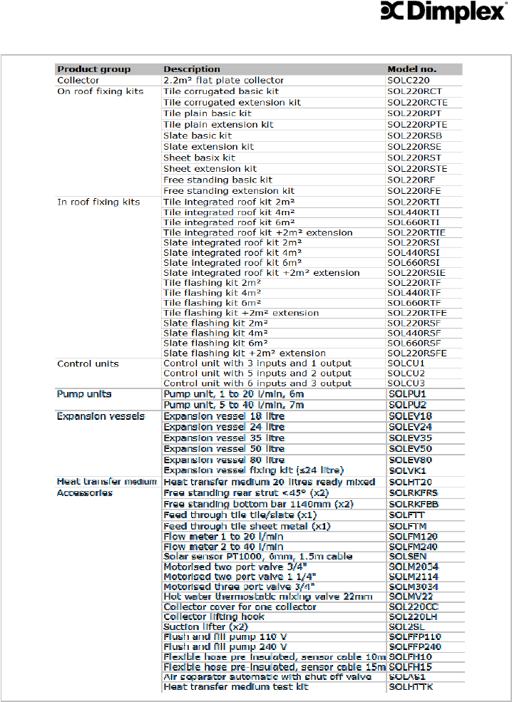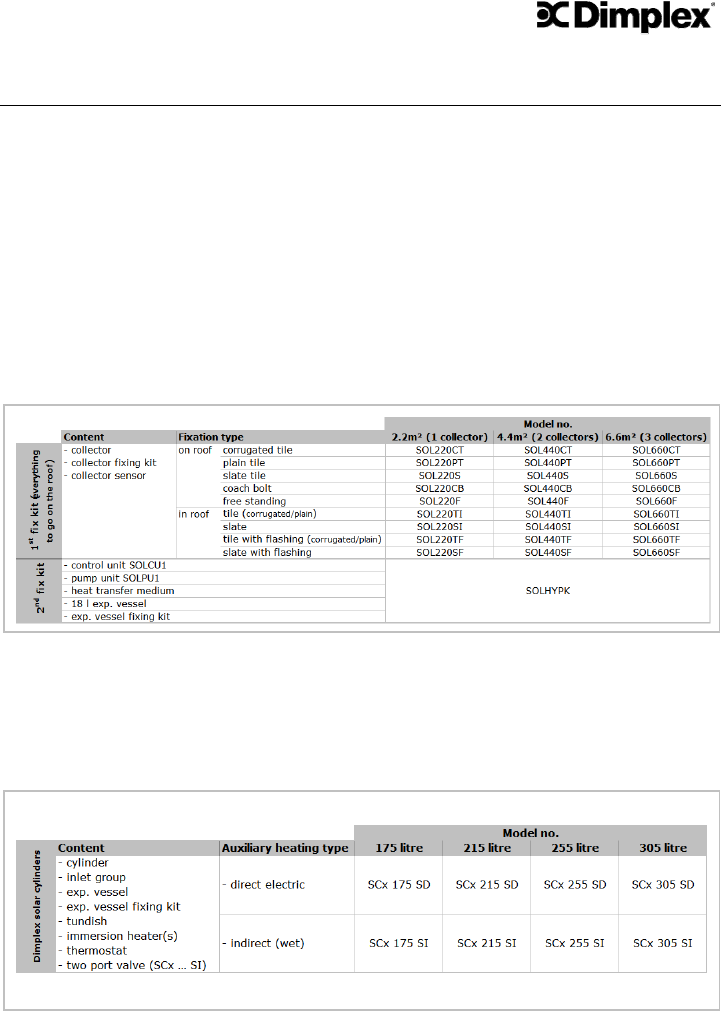 The Dimplex solar product range is offered as kit or as individual components. The fol-