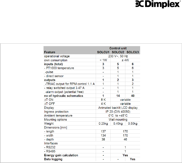 4.2 DIMPLEX SOLAR CONTROL UNIT SOLCU1/2/3 24