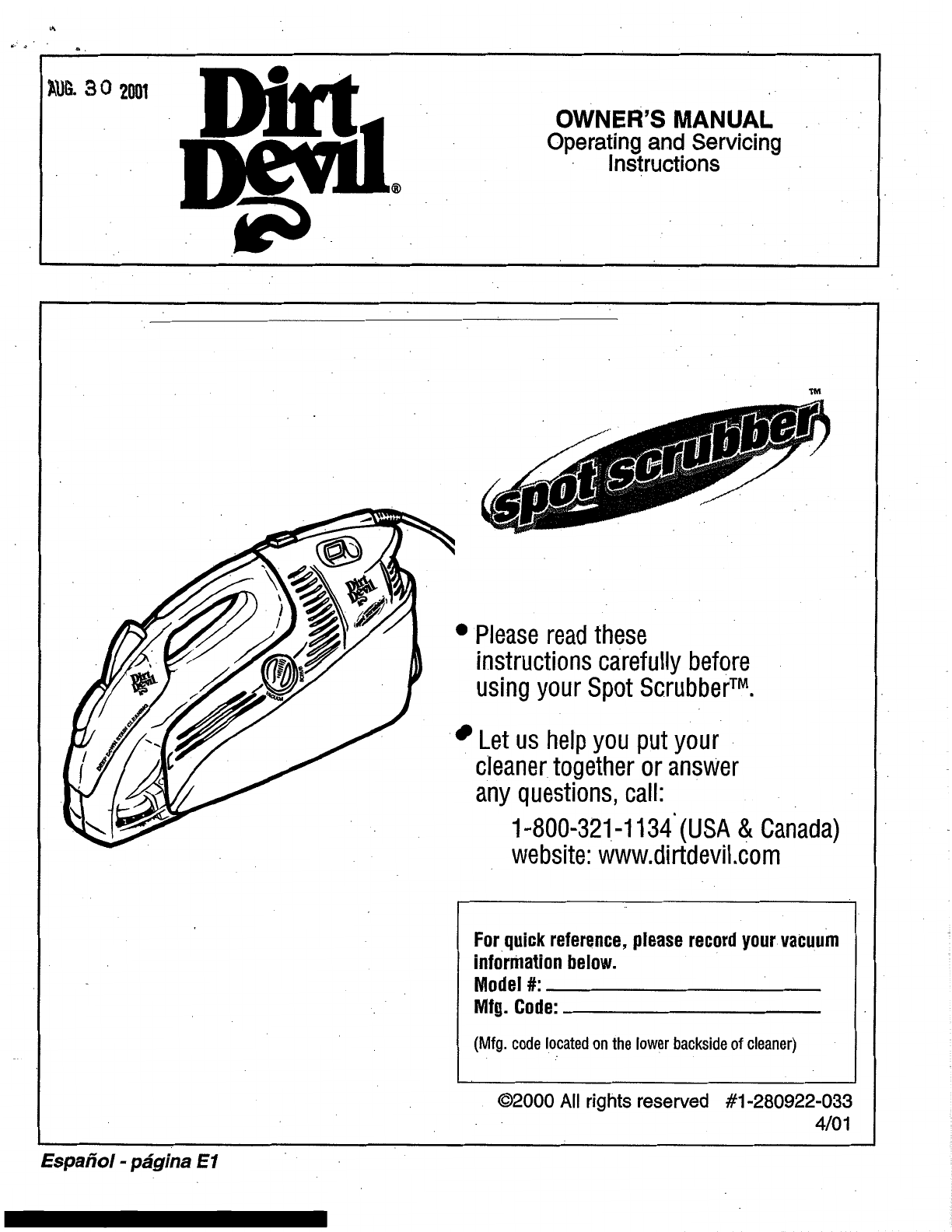 You are now the proud owner of the Dirt DevilQD Spot Scrubber". We trust your new