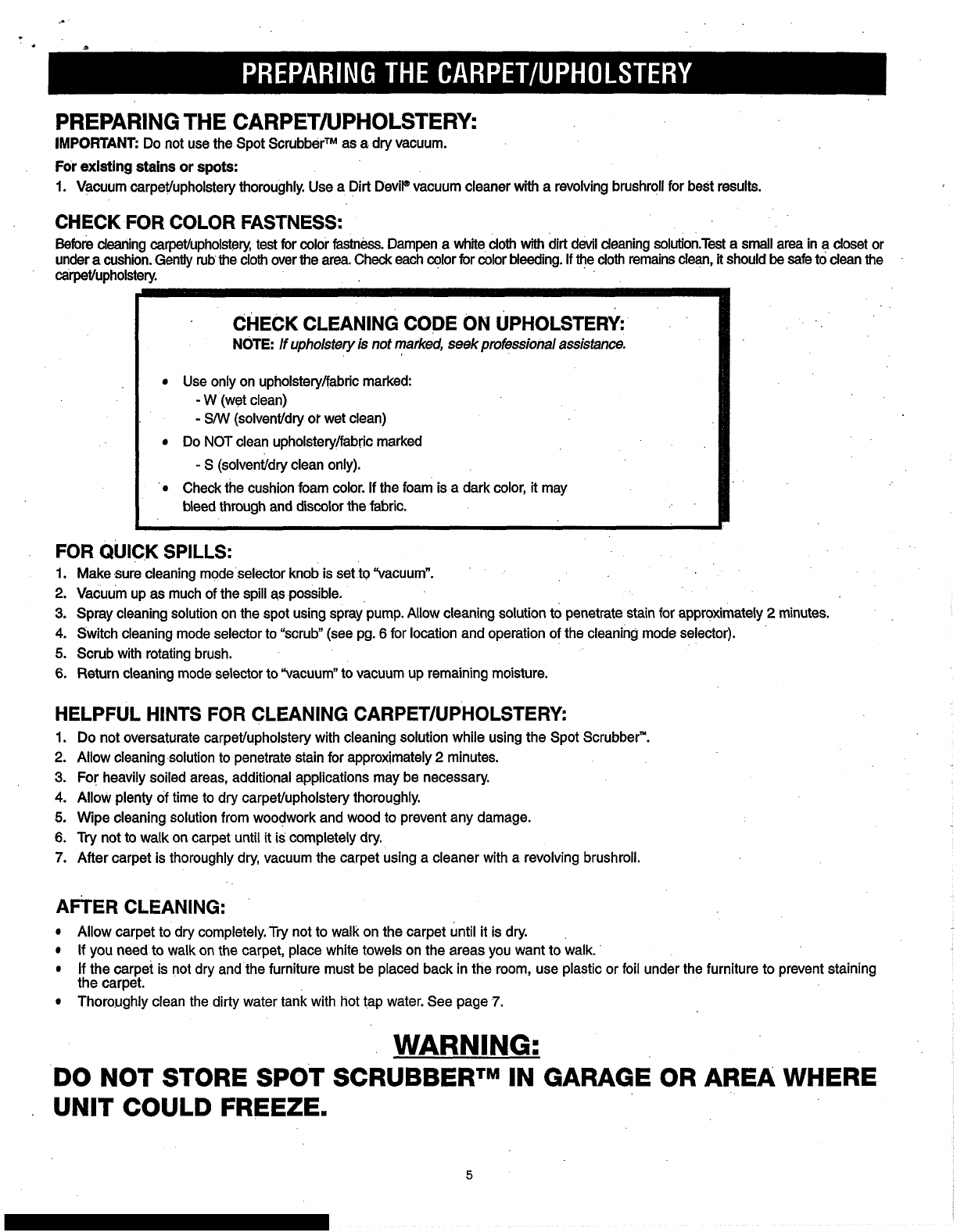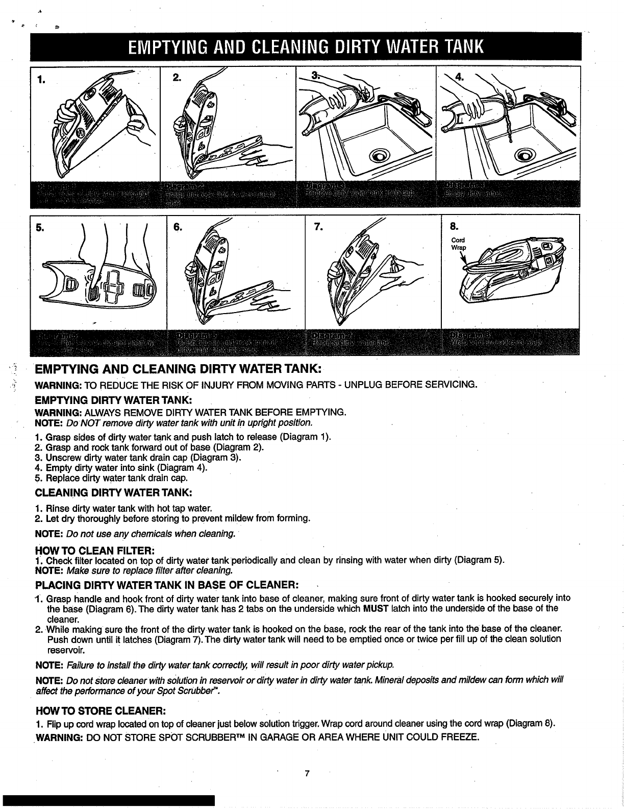 WARNING: DO NOT STORE SPOT SCRUBBERTM IN GARAGE OR AREA WHERE UNIT COULD FREEZE.