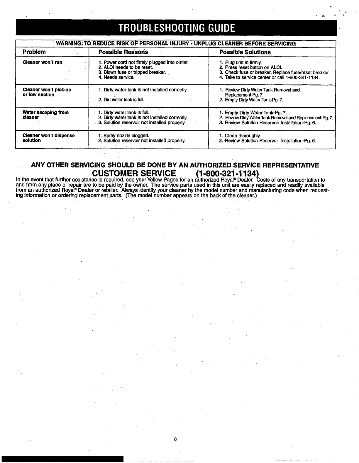 from an authorized Royale Dealer or retailer. Always identify your cleaner by the model number and manufacturing code wgen request-