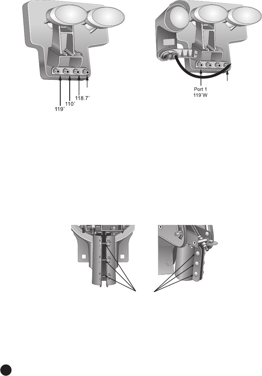 6. For DISH 1000+ only, attach the 1000+ LNBF bracket and a separate DP (Dual or Single) LNBF to the DISH