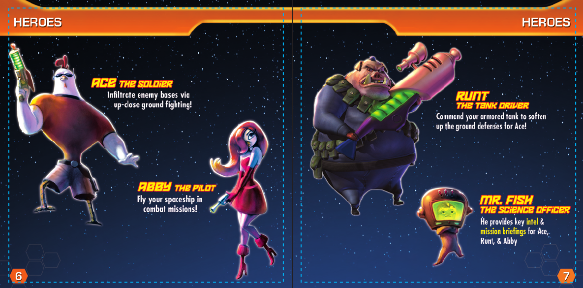 MISSION BRIEFINGS from MR. FISH take place before each character’s