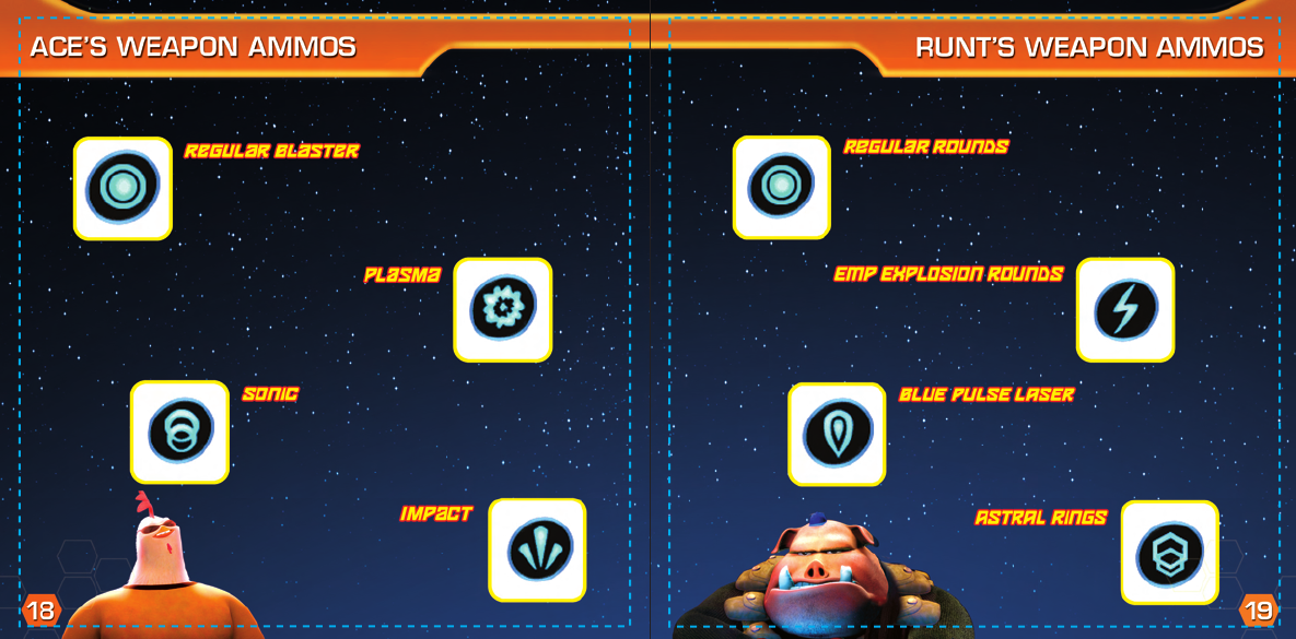Upgrades affect all three characters: Ace, Runt, and Abby.