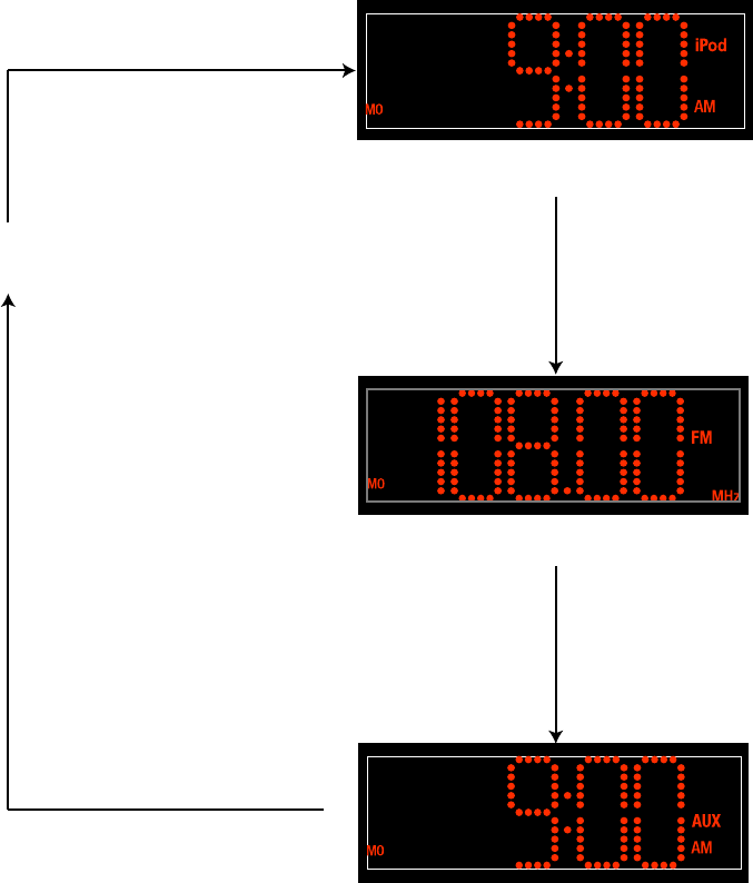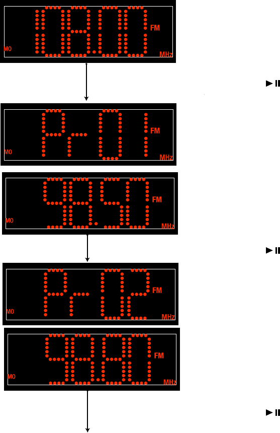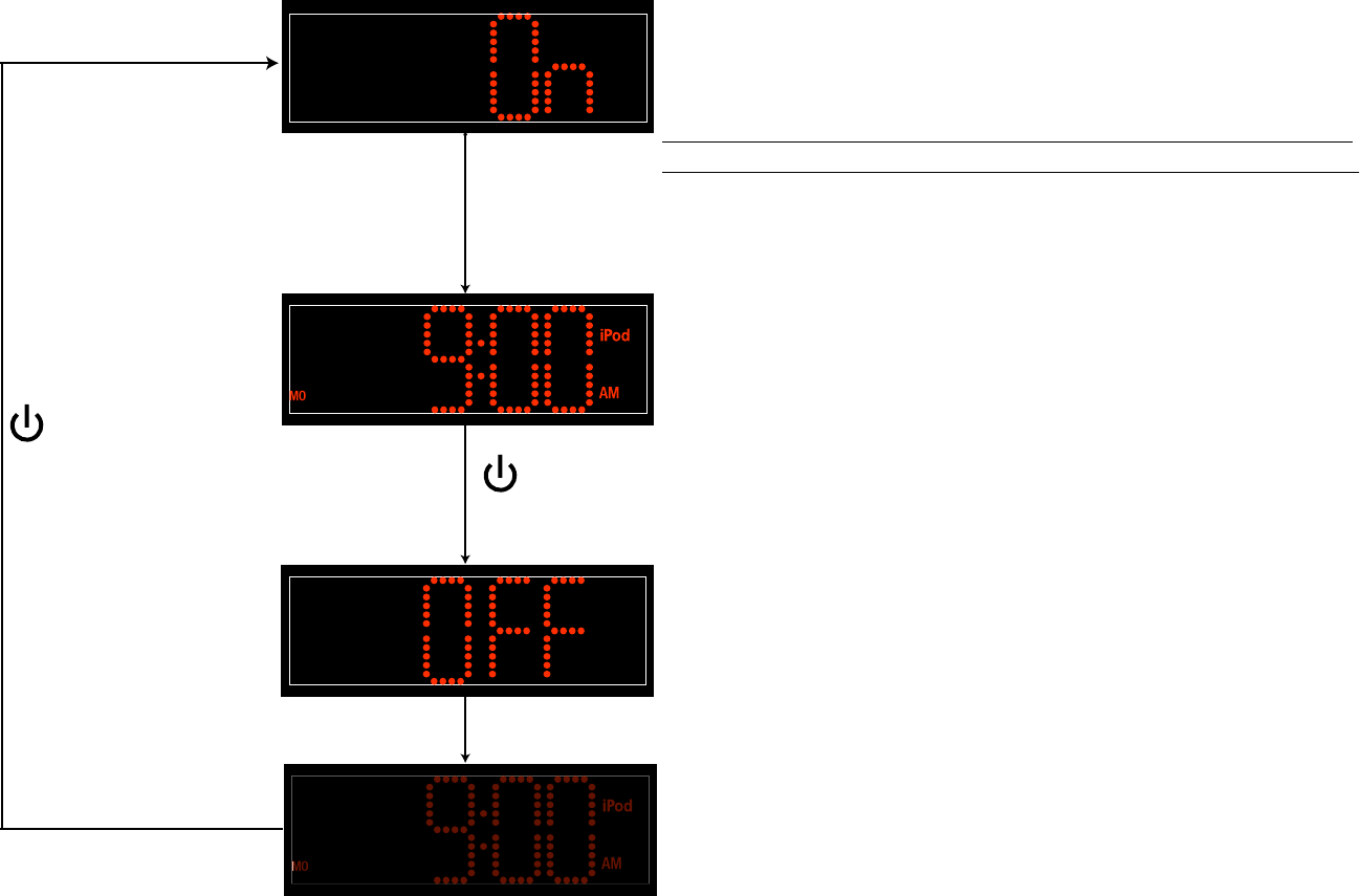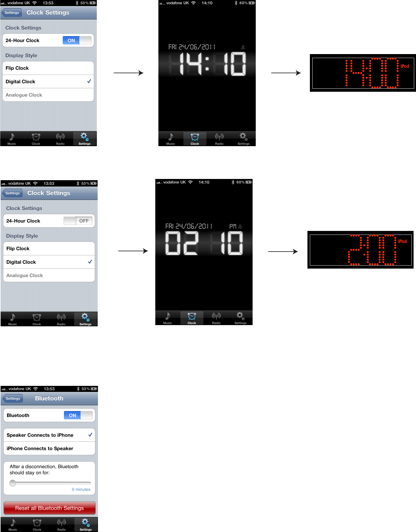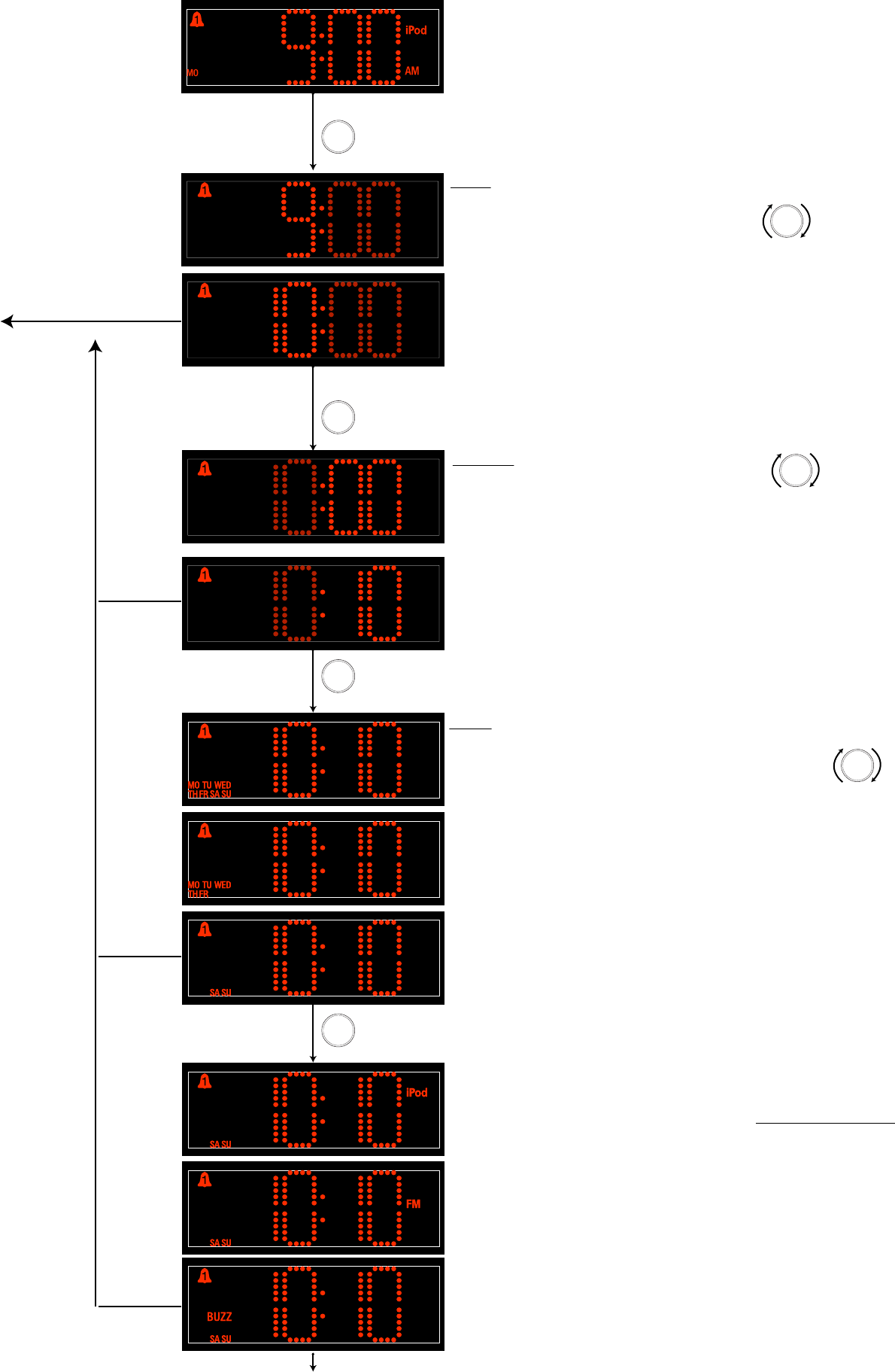 1) 24-hour clock: OFF 1) Time in clock displays changes to12 hour