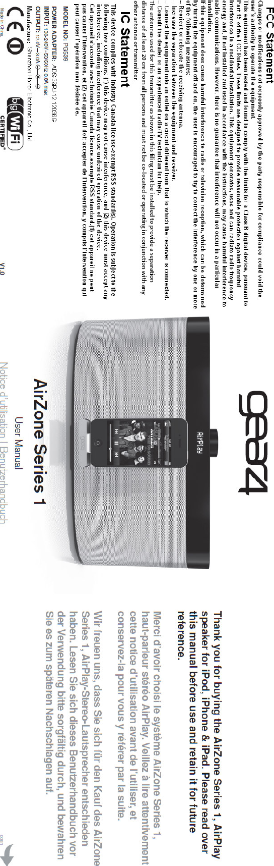 Disruptive PG539US Air Zone Series 1 User Manual Full page fax print