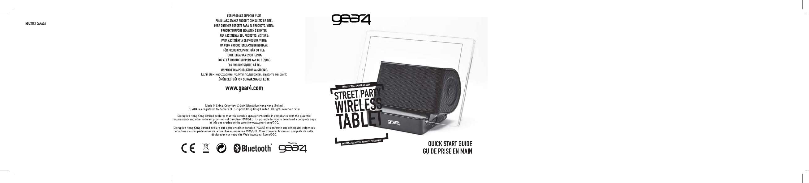 Disruptive Hong Kong Limited StreetParty Wireless Tablet Speaker Users Manual