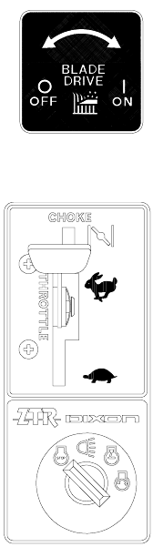 Mower blades engaged - - - - - - - - - - - - - - - disengage blades