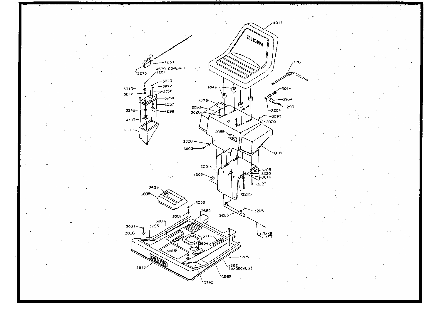 located on the brake shaft P/N 9283. Disconnect seat switch P/N 4761 at plug-in.