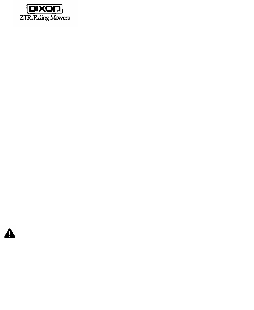 ® Dixon and ZTR are registered trademarks of Dixon Industries, Inc.