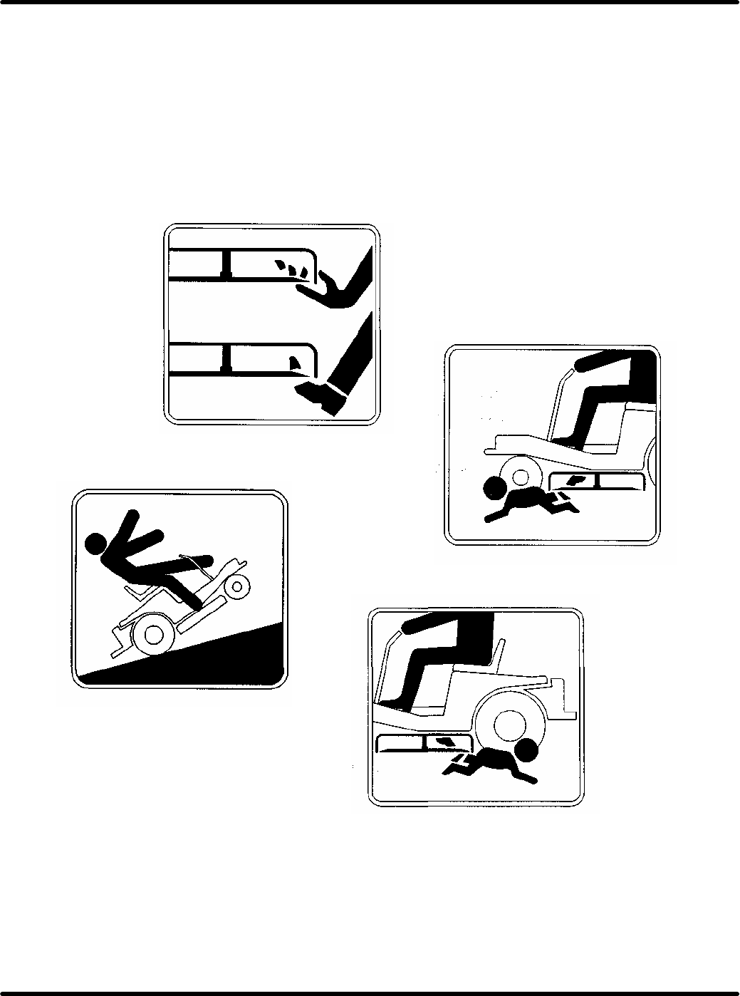 • Never leave a running mower unattended. Always turn off blades, set parking brake, stop engine, and