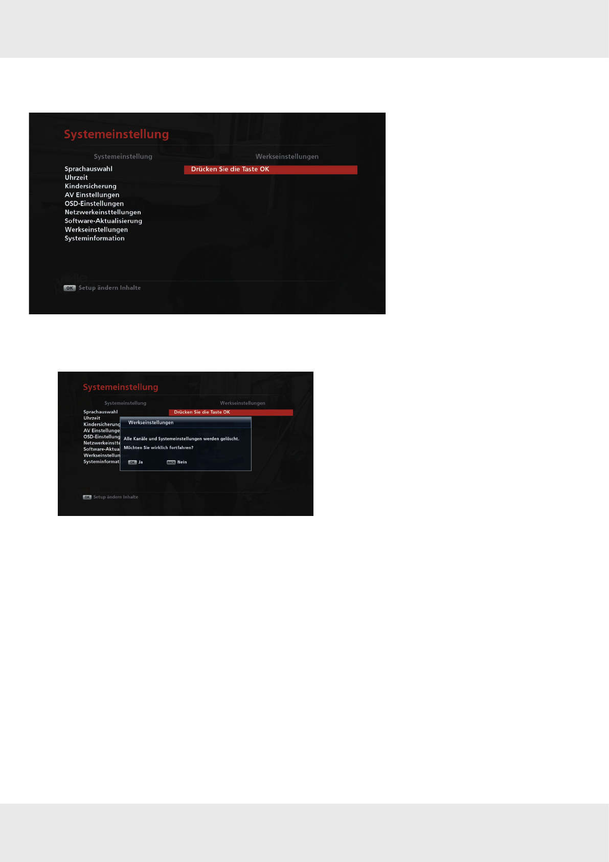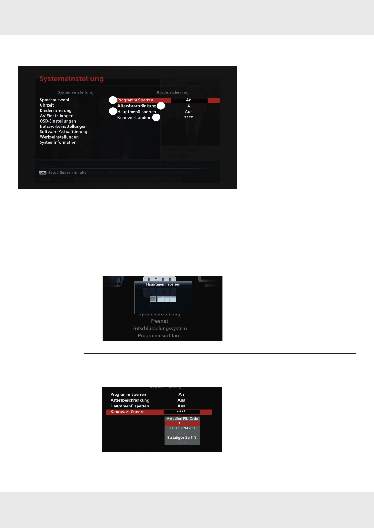 Die Firma Kathrein übernimmt keine Haftung für den Verlust von Aufnahmen/Daten von der internen Festplatte oder von