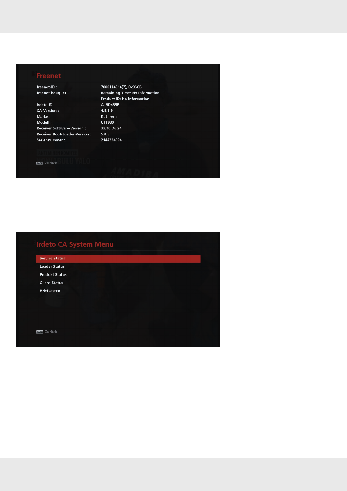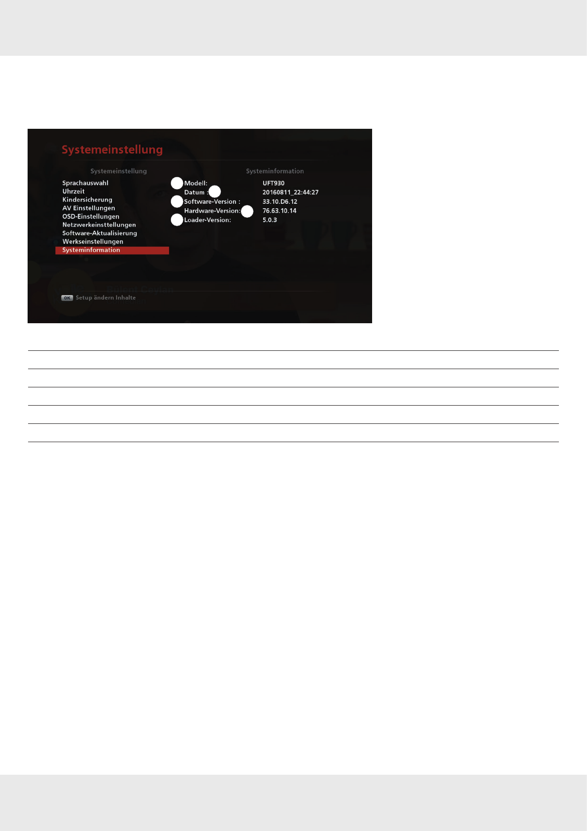 In diesem Untermenü ist es möglich, Informationen zum Receiver anzusehen.