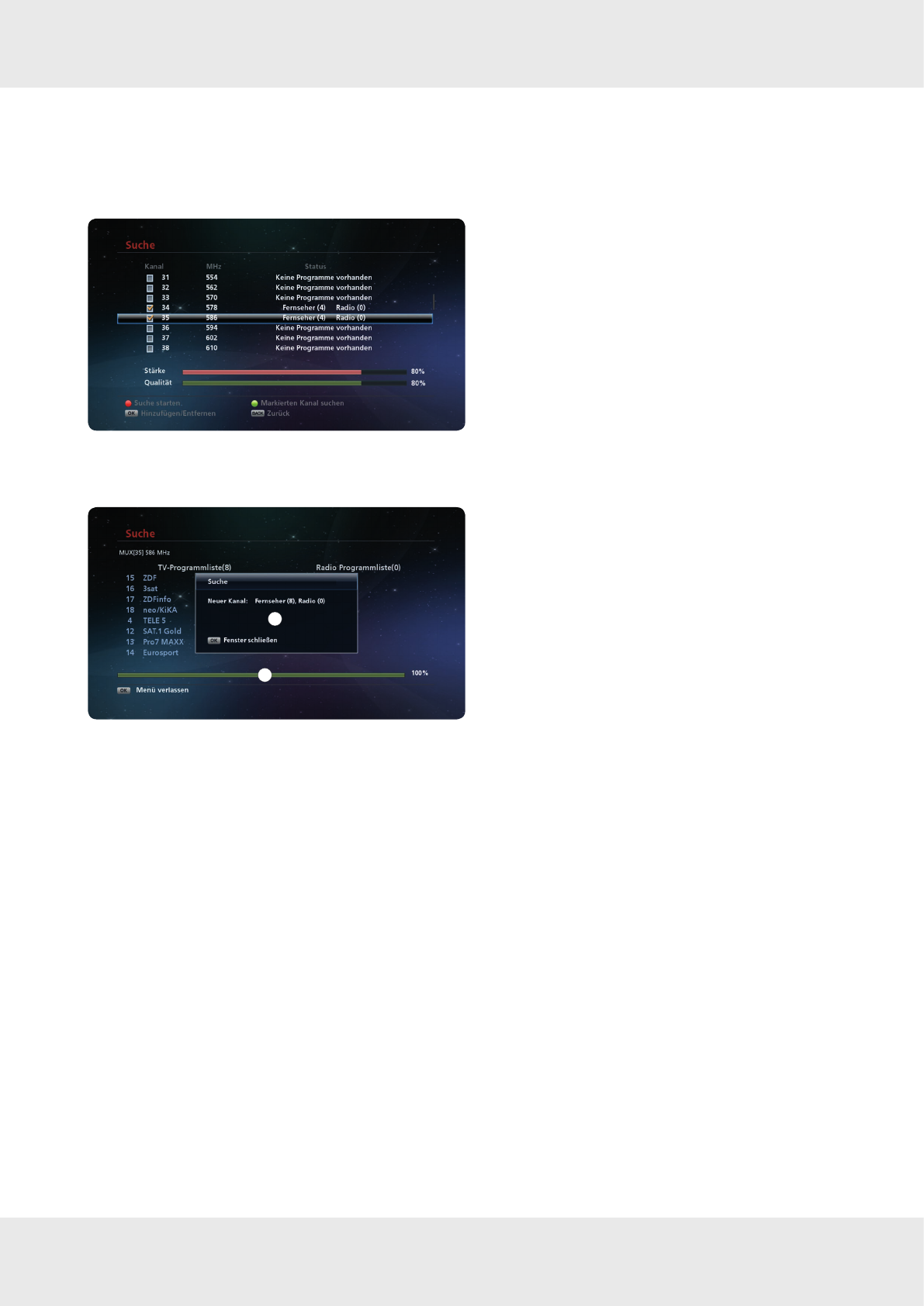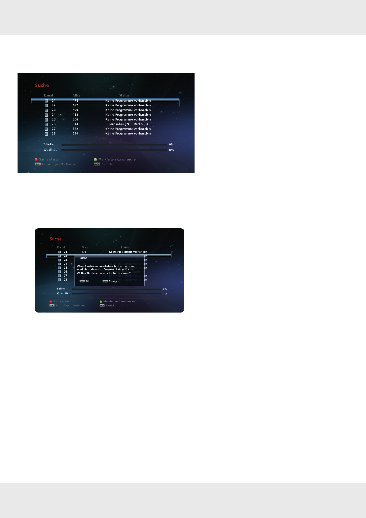 In diesem Untermenü ist es möglich, einen automatischen oder manuellen Programmsuchlauf durchzuführen.