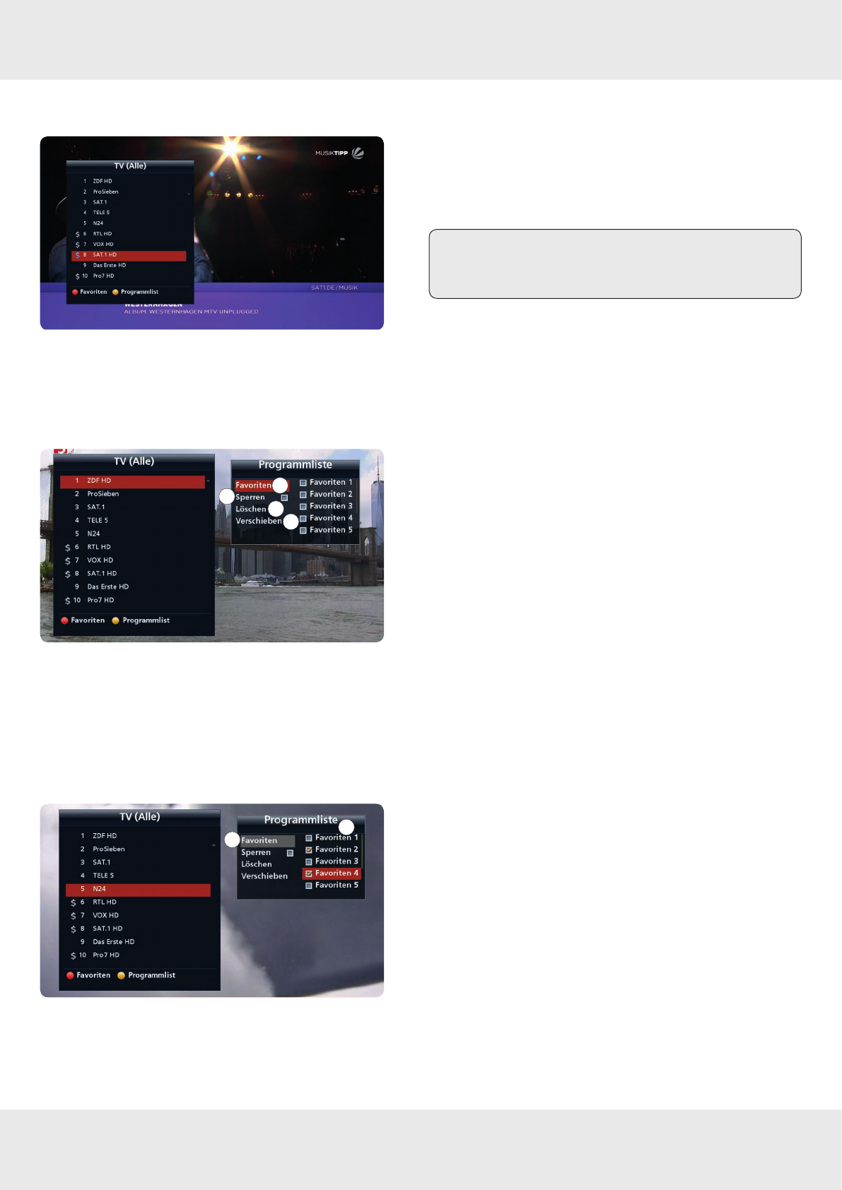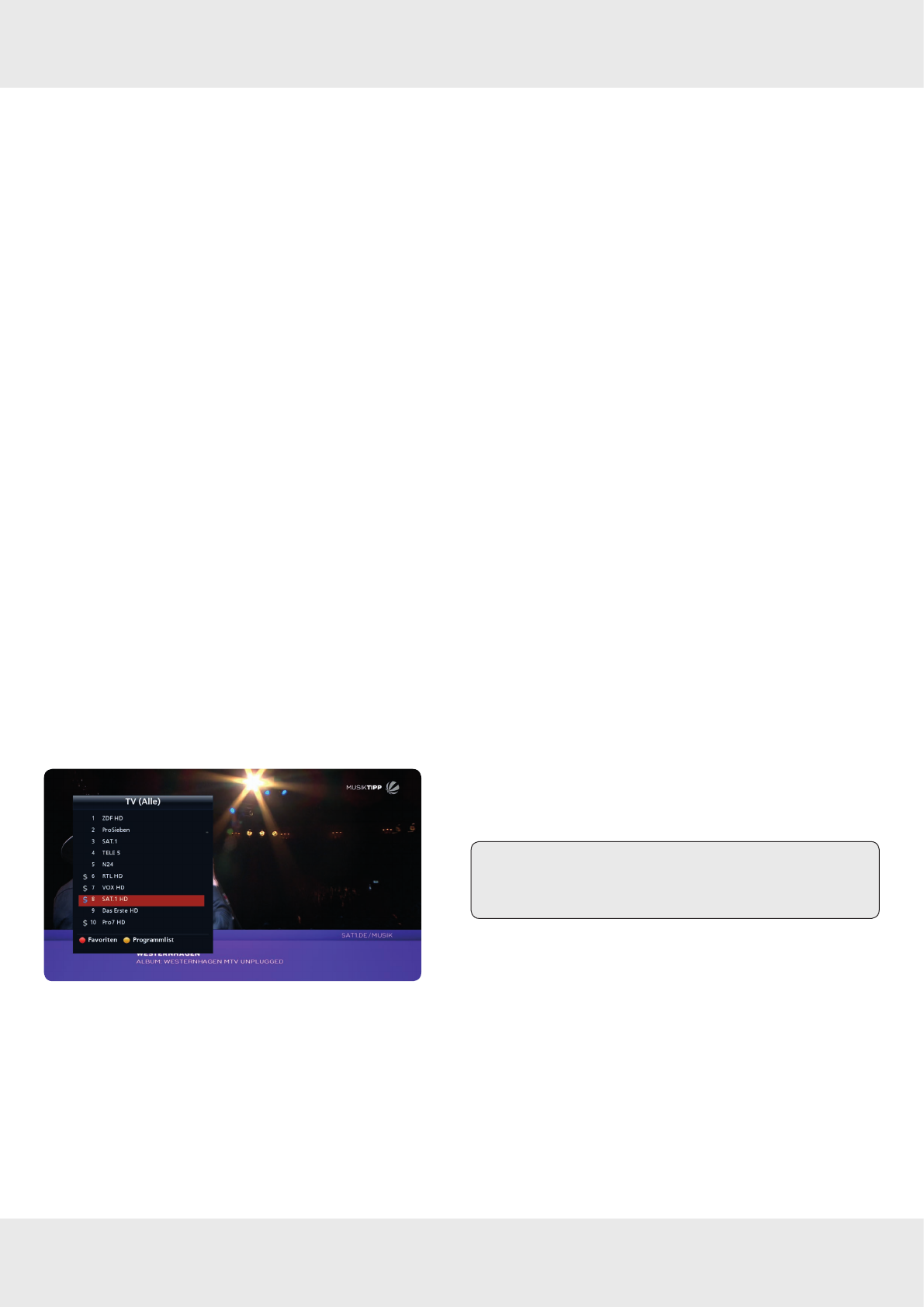 4.2 Live-TV/Radio umschalten und Programme wählen 7