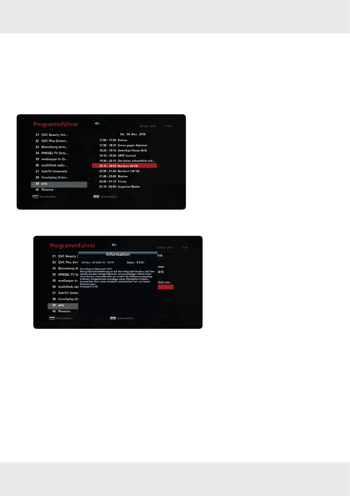 • Bedienung und Funktionen von Live-TV/Radio und Programmführer (EPG)