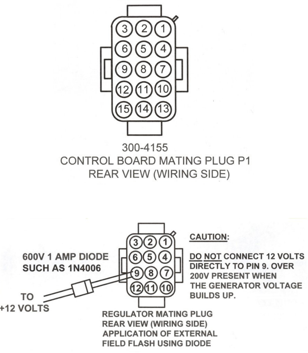 Upon starting, the control board provides 12 volts DC to the eld windings via the + terminal of the rectier. Once oil