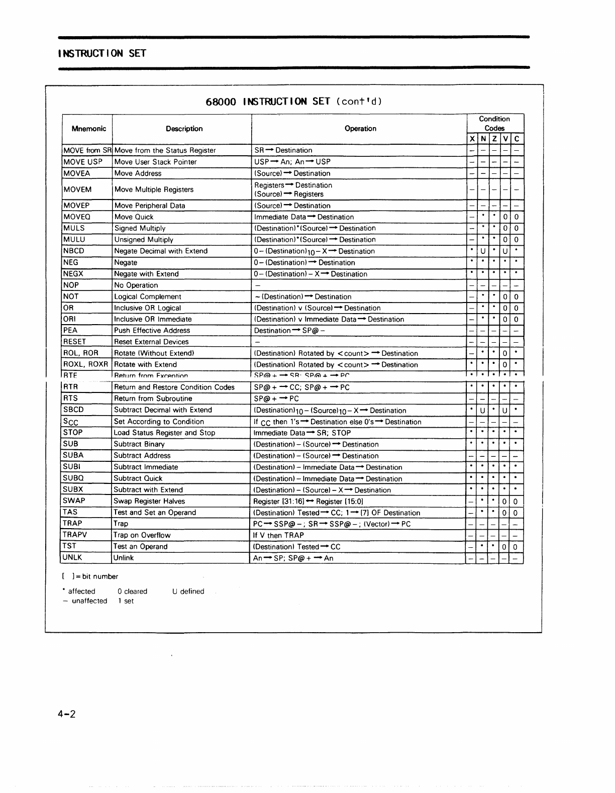 SUBX Subtract with Extend (Destination) -(Source) -