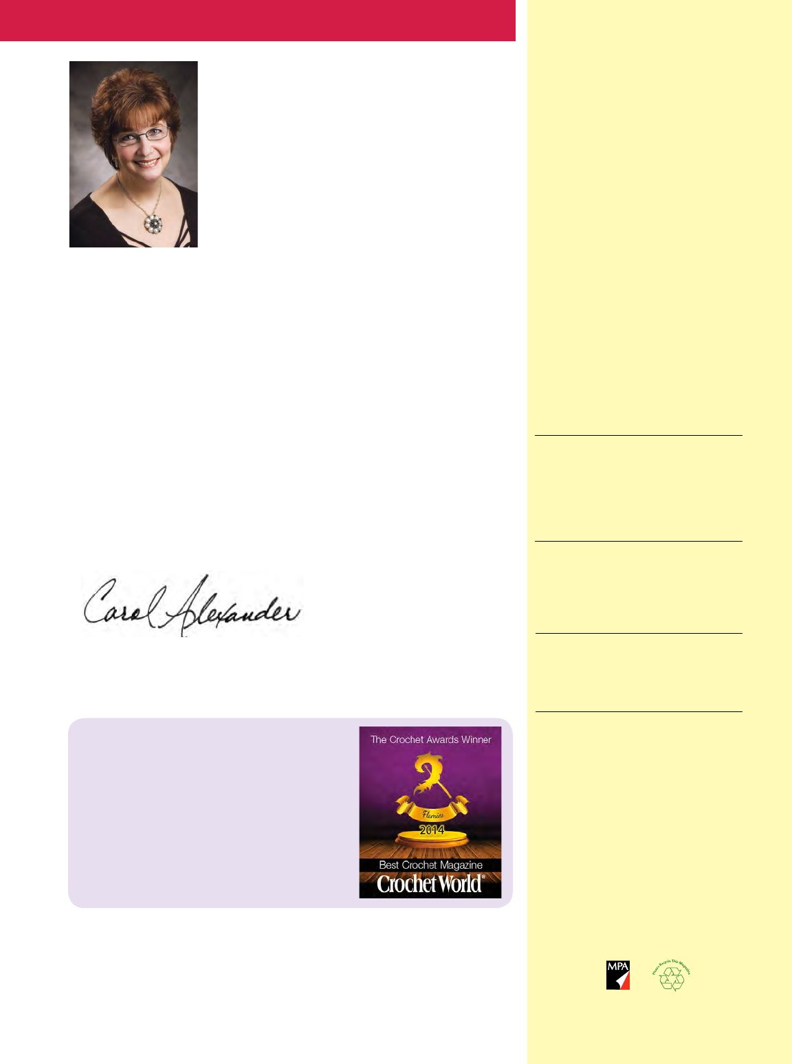FOR SUBSCRIPTION SERVICE, including change of address, visit online at Crochet-World.com (select