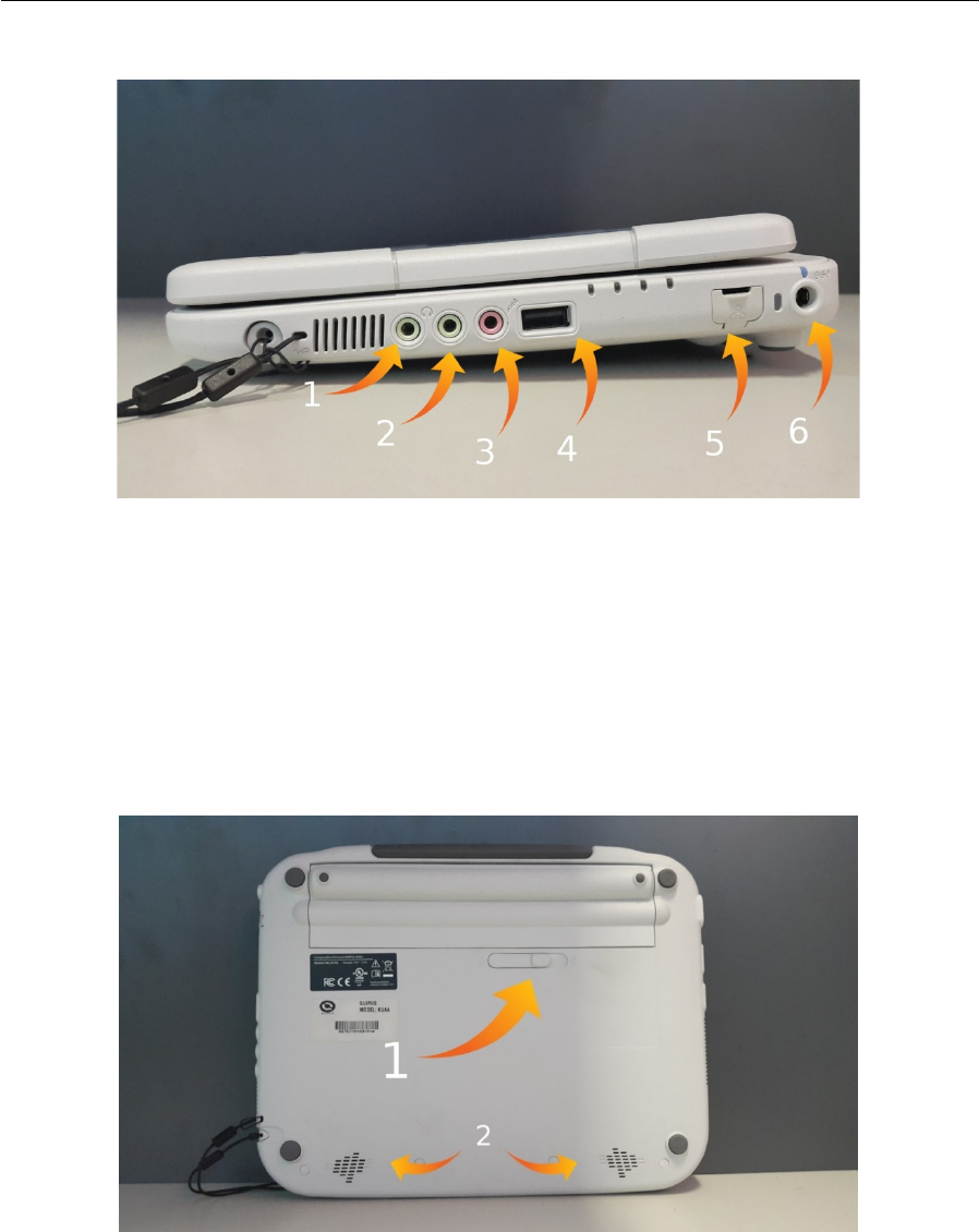 2) Parlantes en estéreo. Permiten la salida del sonido.