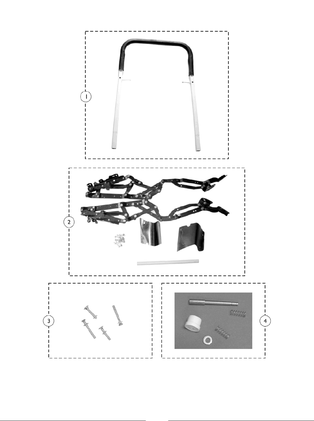B - Kit includes: (2) Reclining Mechanisms, (2) Finger Guards, (8) Phillips Head Screws (M6 x 40) and (8) Hex Nuts (6mm).