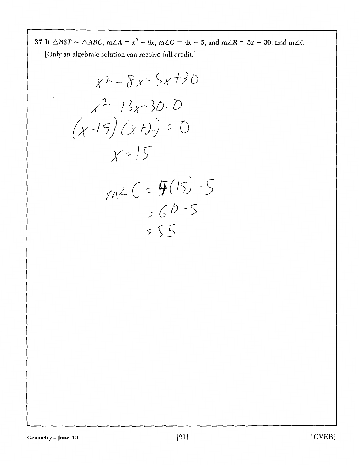 (Only an algebraic solution can receive