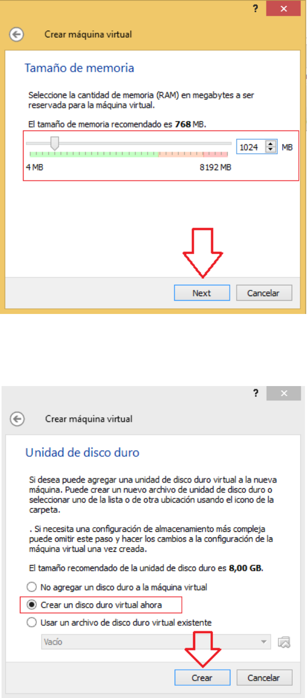 máquina virtual en este caso le vamos a asignar 1024mb, ya que la instalación que vamos a