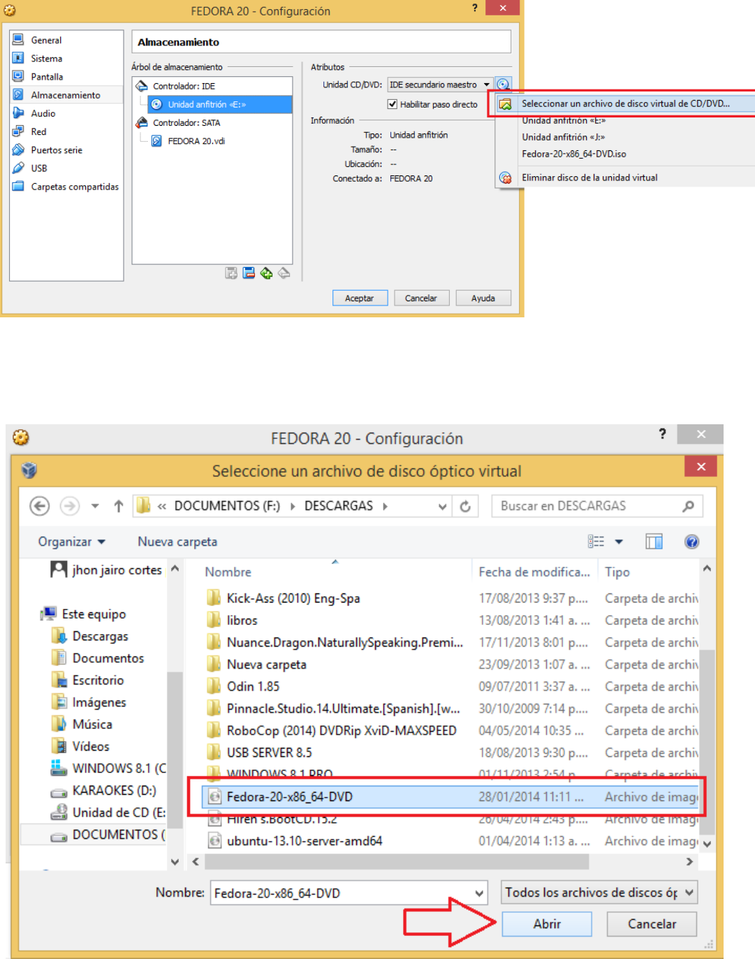 INSTALACION FEDORA 20 EN MAQUINA VIRTUAL (VIRTUALBOX), pero con la siguiente