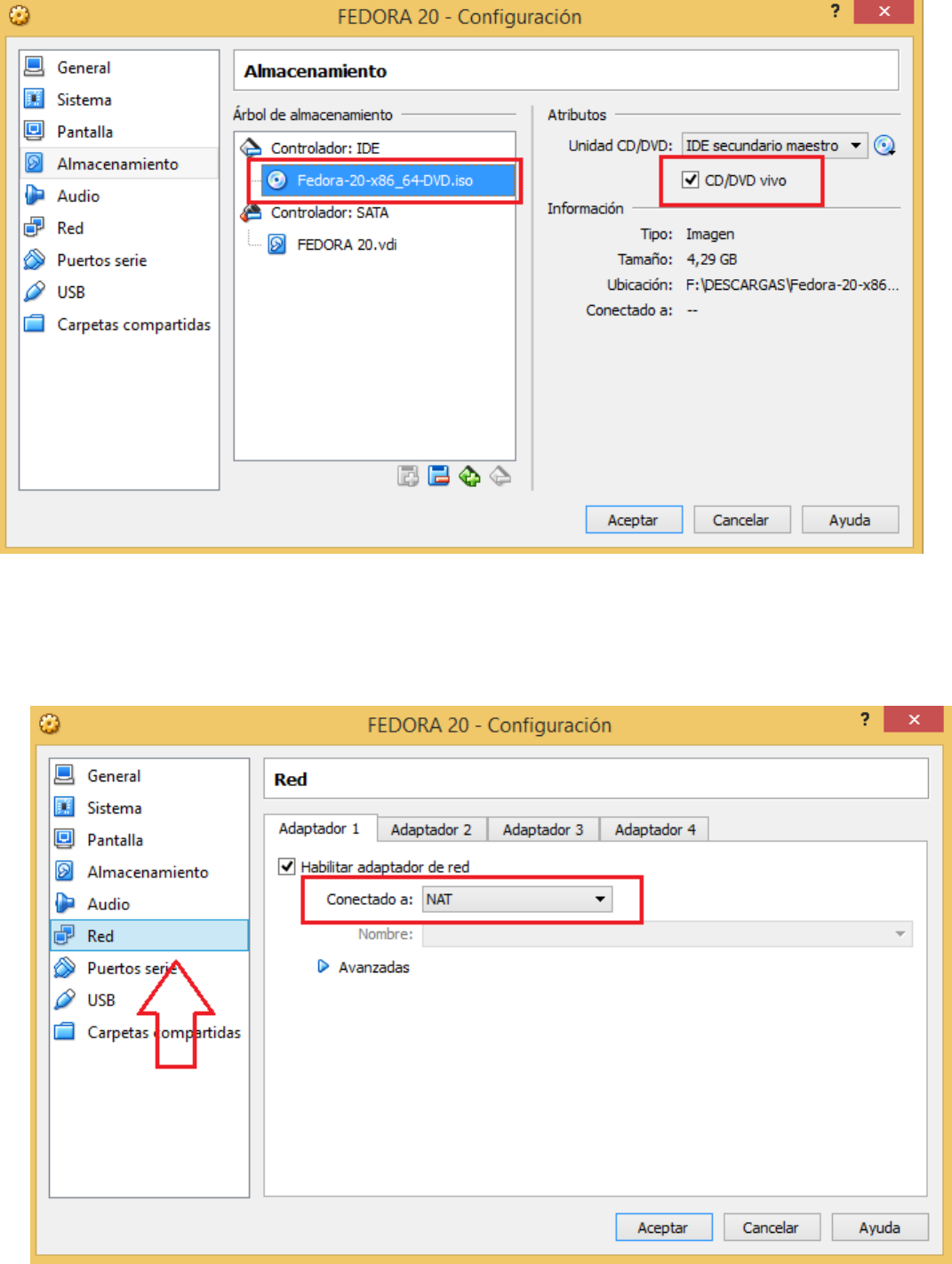 encuentran al inicio de este manual en la sección INSTALACION FEDORA 20 EN MAQUINA