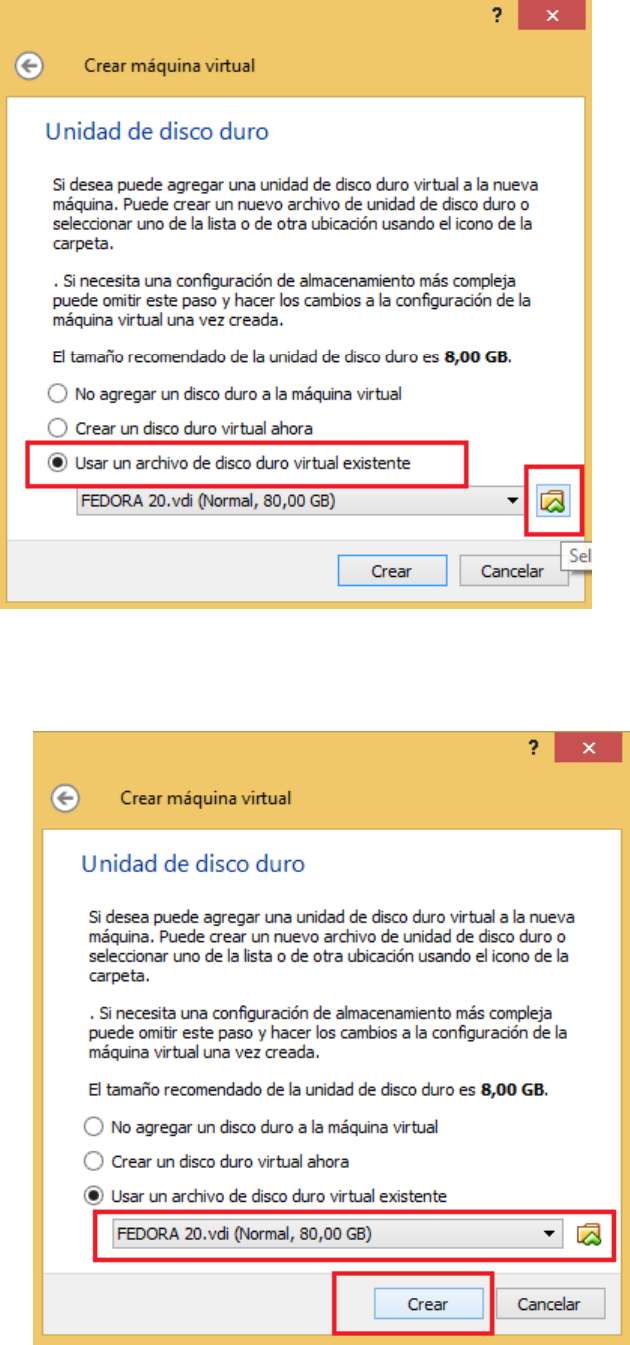 variación al momento de crear el disco duro virtual no crearemos un nuevo disco,