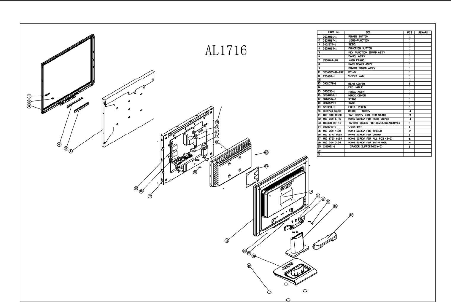 provided by your regional Acer office to order FRU parts for repair and service of customer machines.