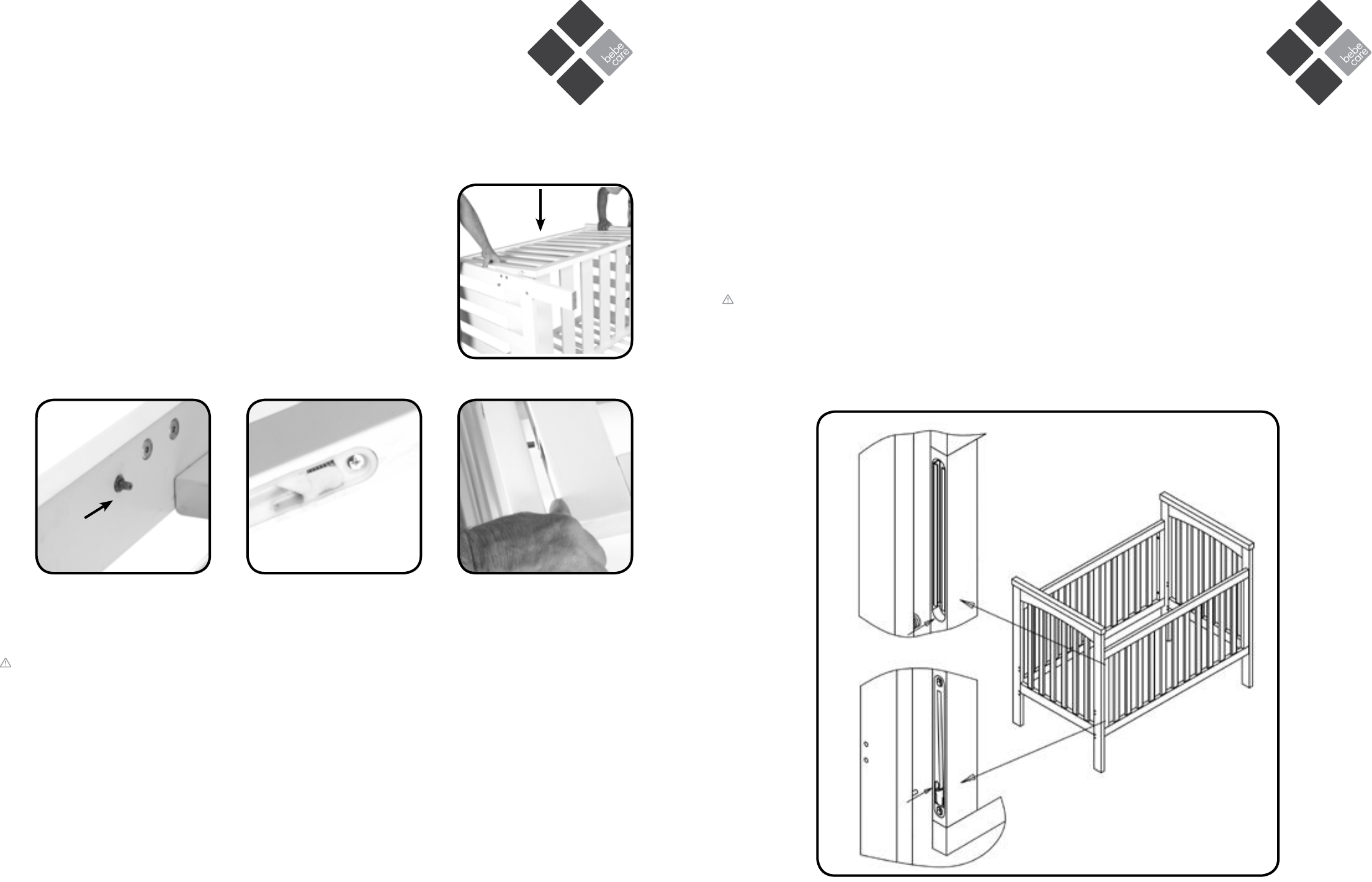 When the mattress base is assembled in the lower position ENSURE the higher cot base