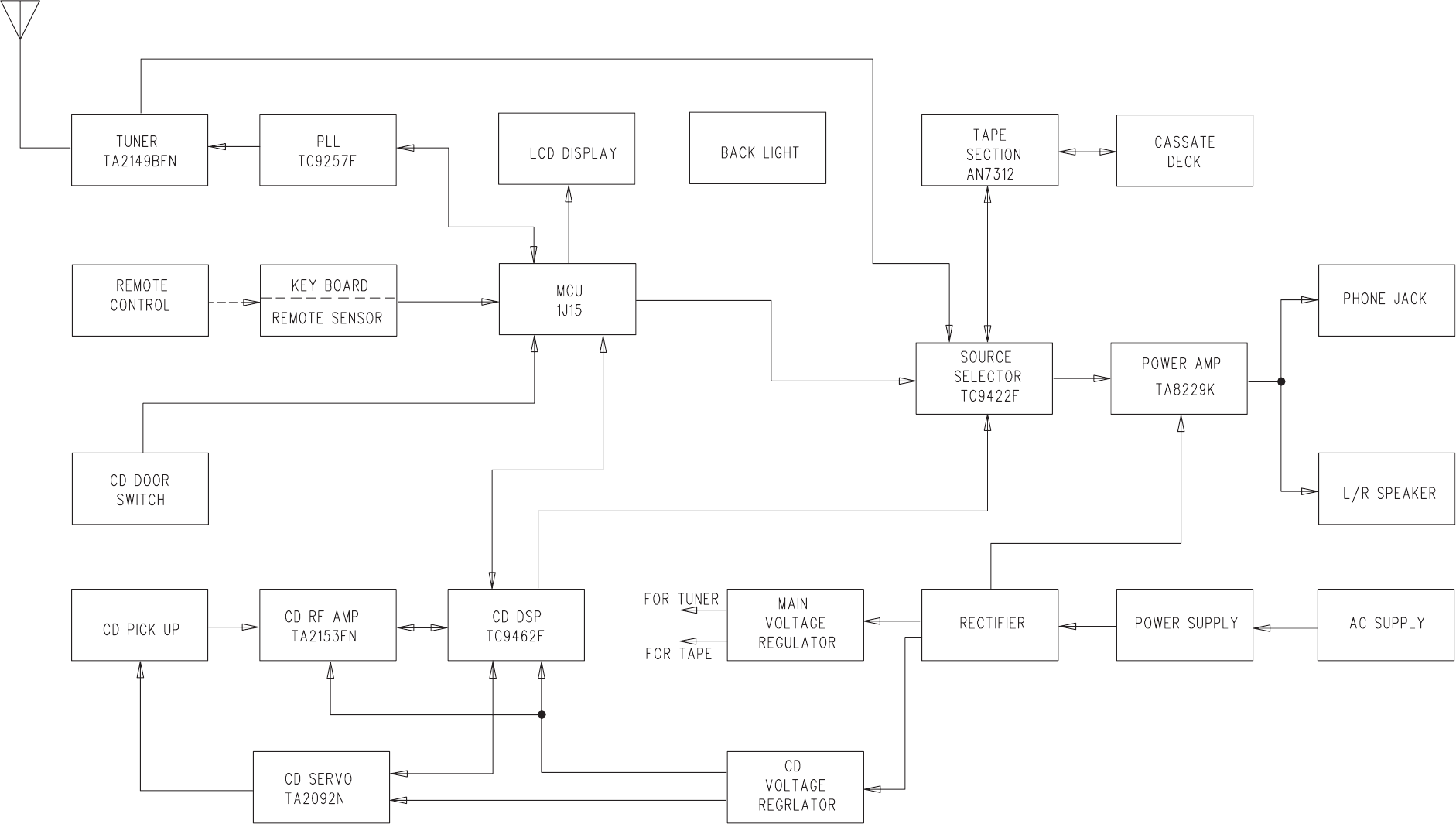 CA-UXH10 Output Power (IEC 268-3) 10 W (5 W + 5 W) at 4 Ω (10% THD)