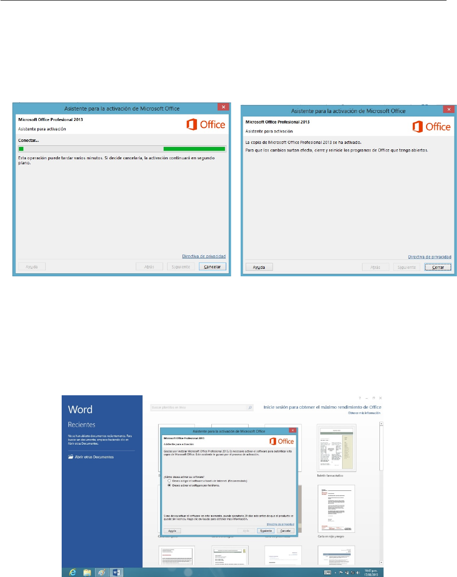 3.4 Una vez realizado todos los pasos la copia de Microsoft Office 2013 se activara,