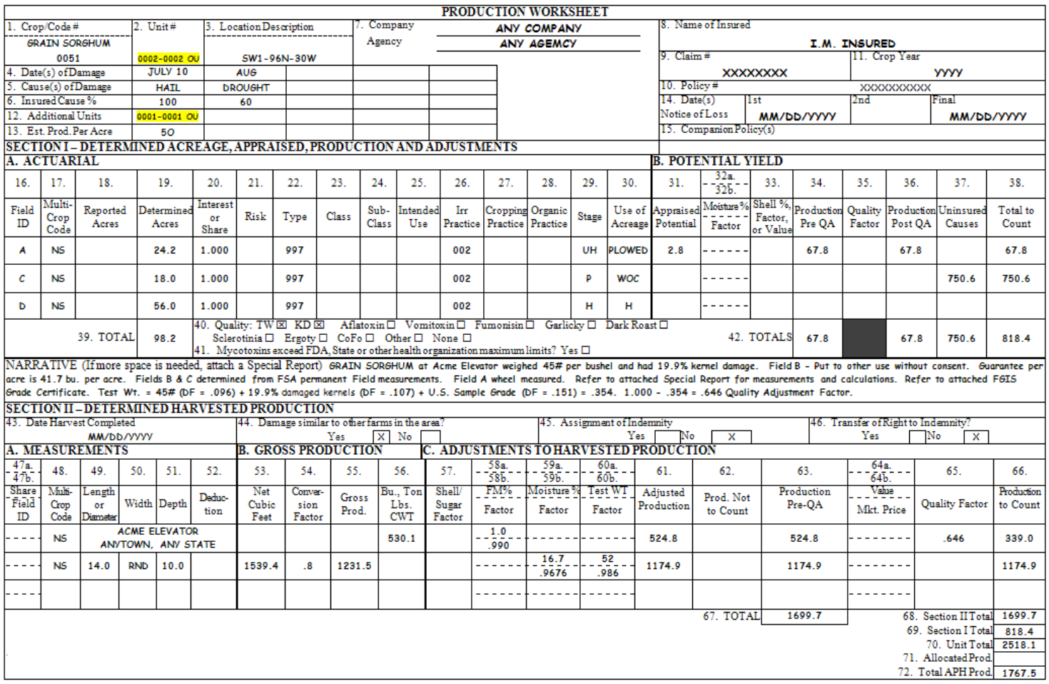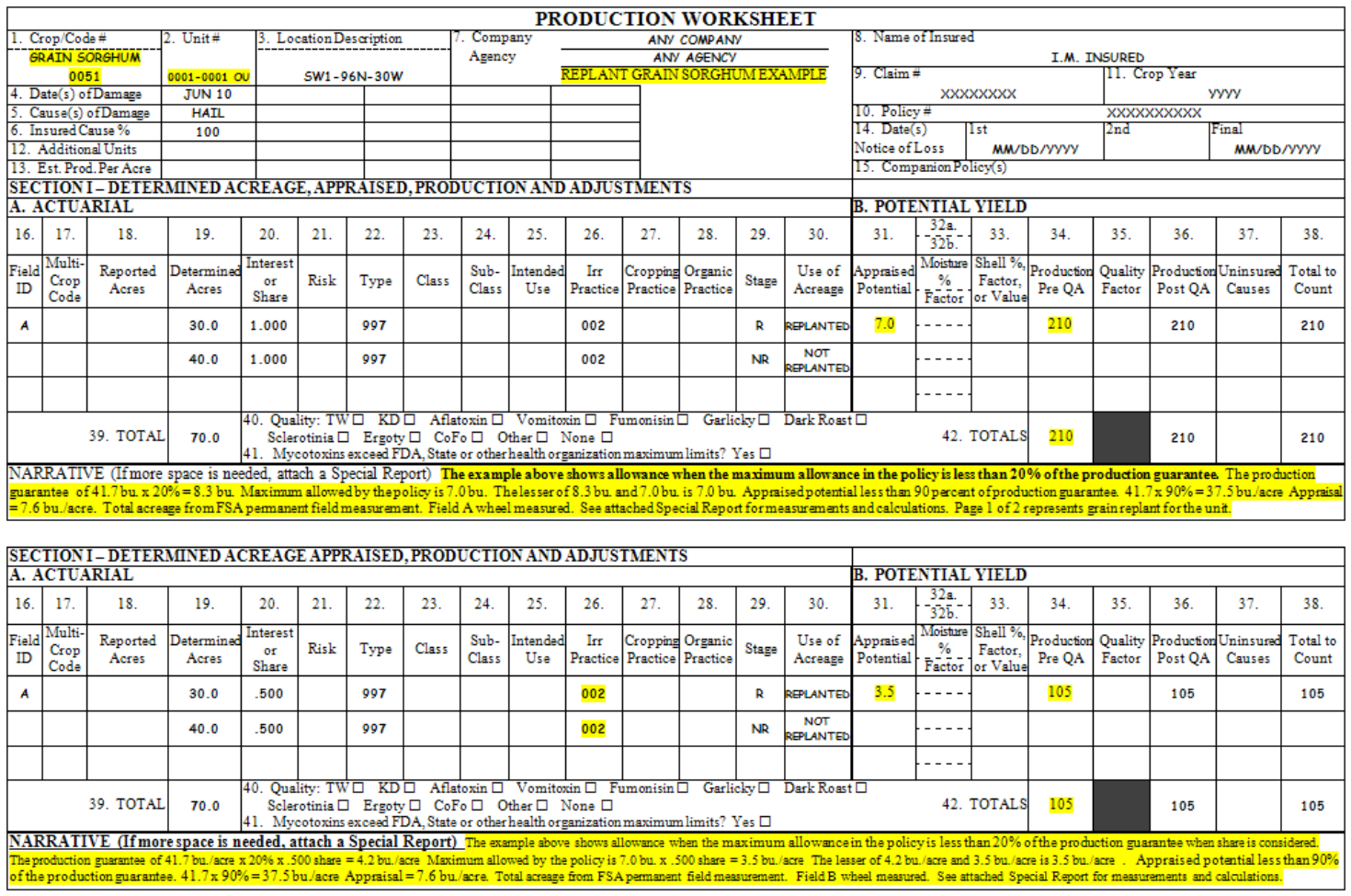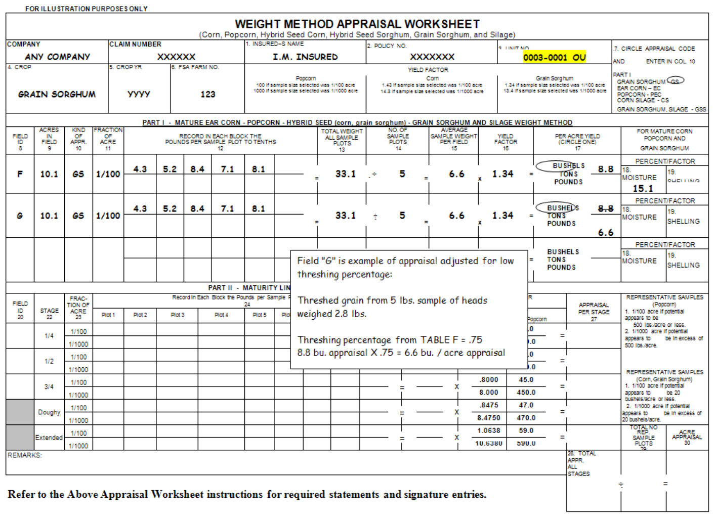 ordered the appraised insured crop or production to be destroyed, enter the factor “.000,” and to