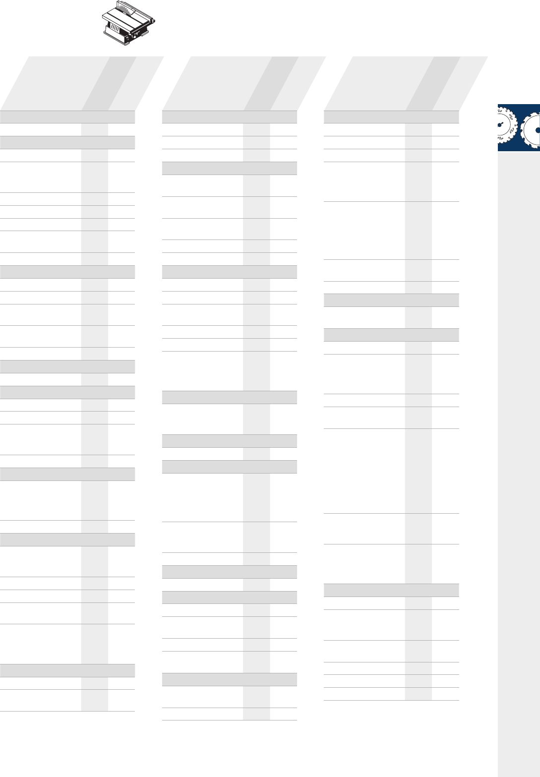 Technische Tabelle mit dem korrekten Zahnvorschub, dem Materialvorschub,