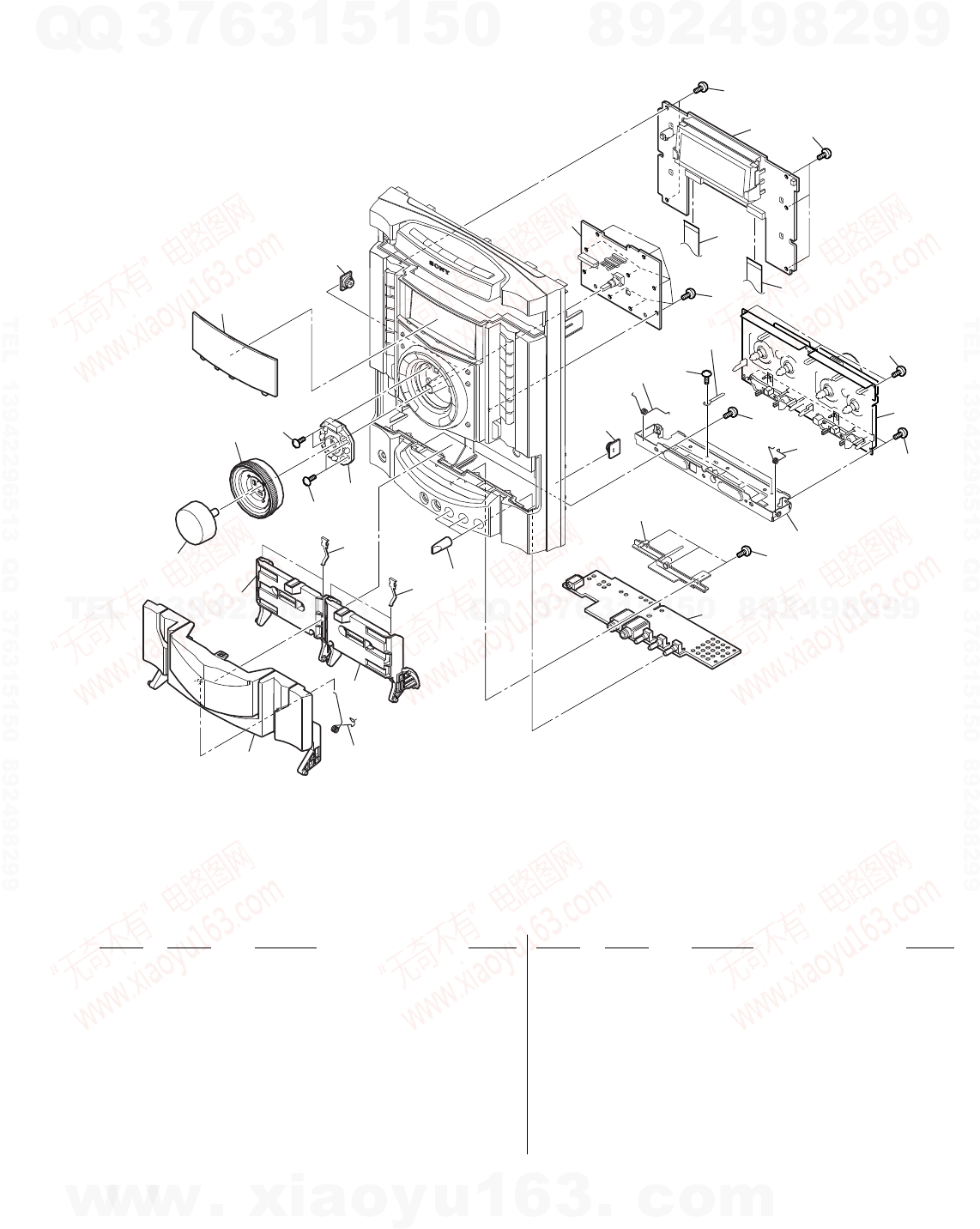 COMPONENTS WITH SONY PARTS WHOSE PART NUMBERS