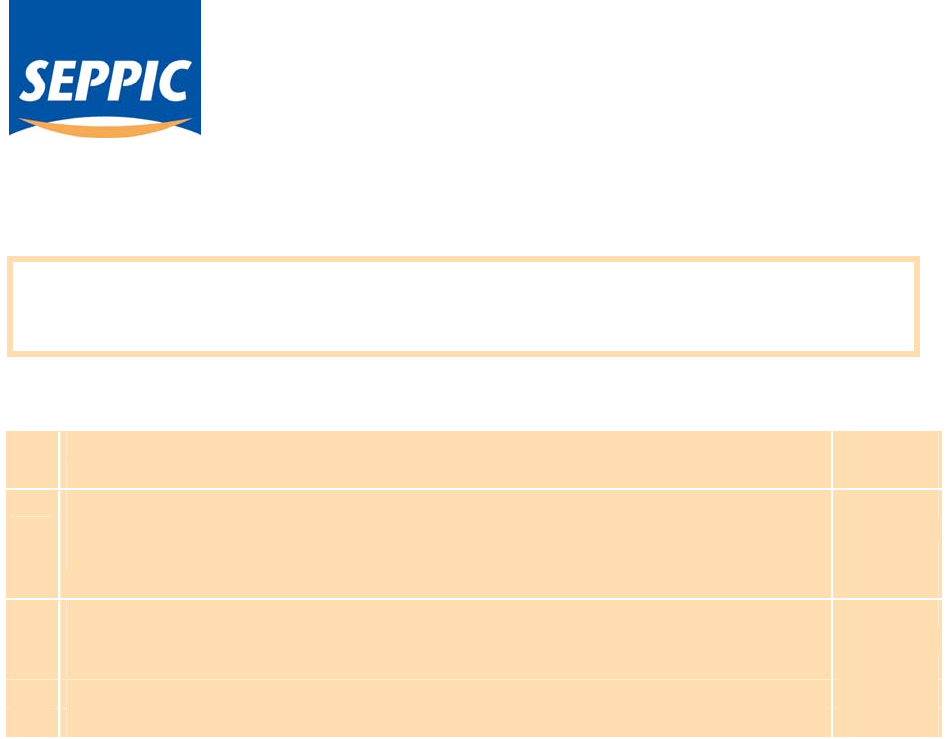 SEPPIC*, SEPPIC* ne donne aucune garantie, implicite ou expresse, et n’assume aucune responsabilité