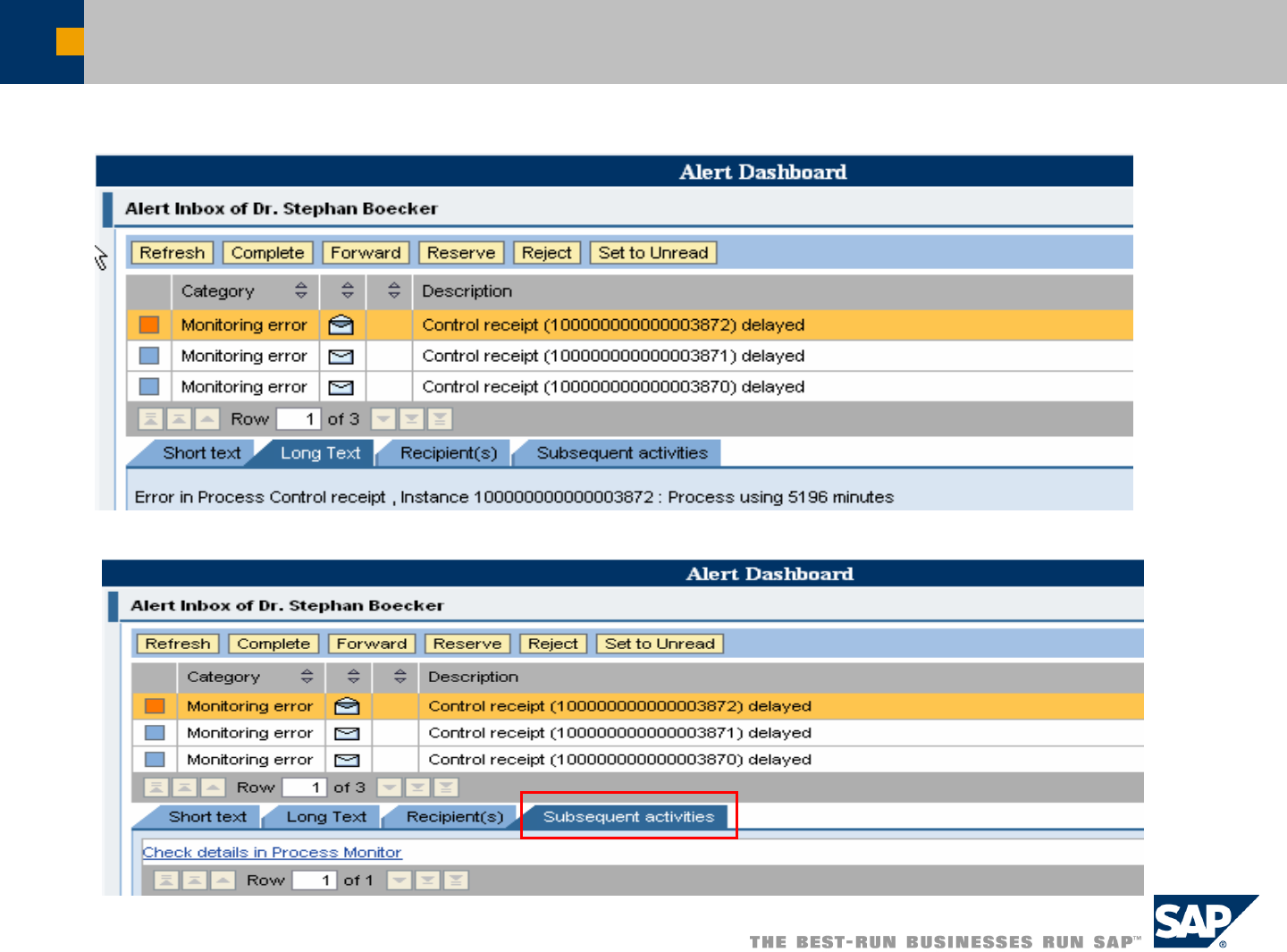 Process Monitoring Cockpit – Drill Down in ERP