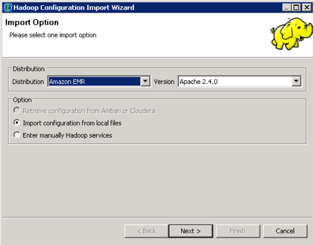 asked to choose from which component the Hadoop configuration will be retrieved: