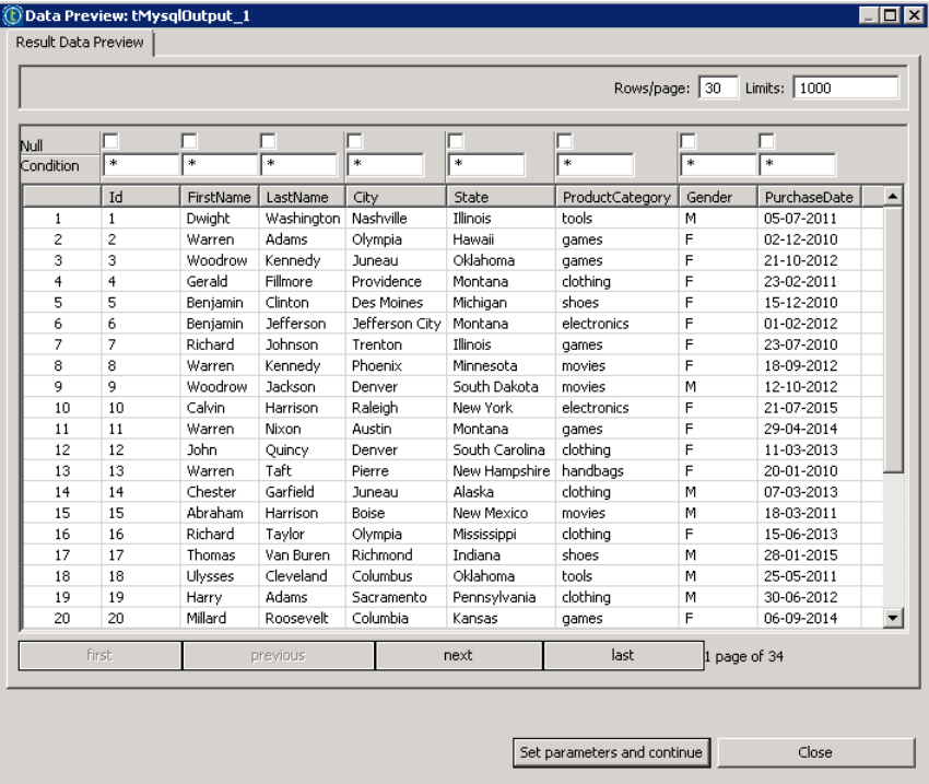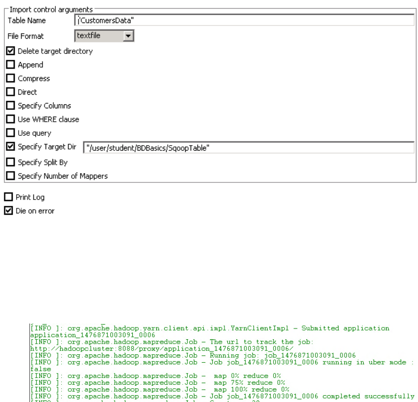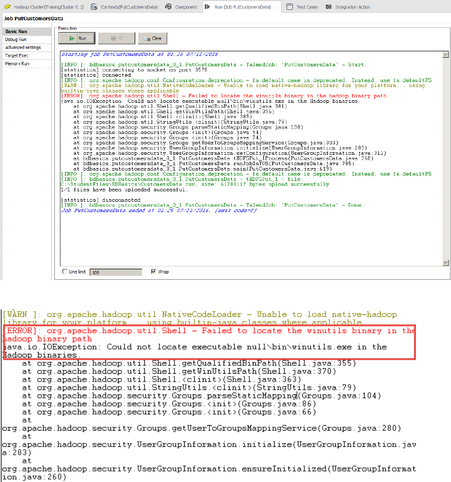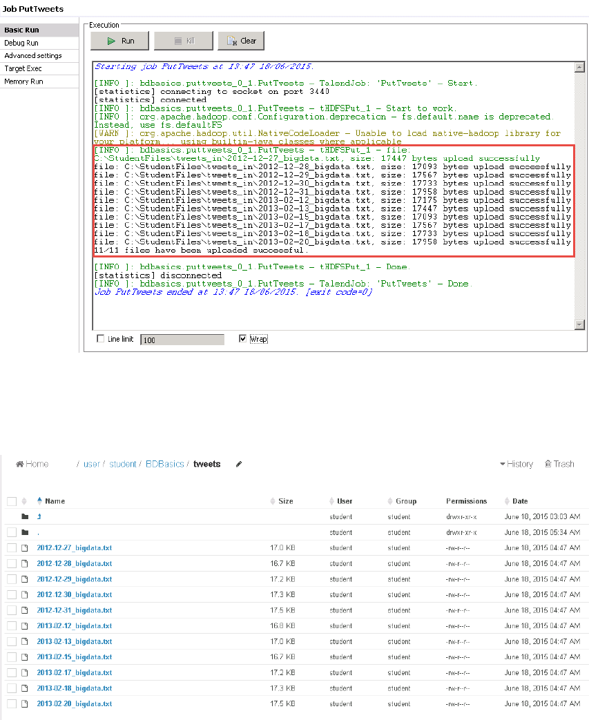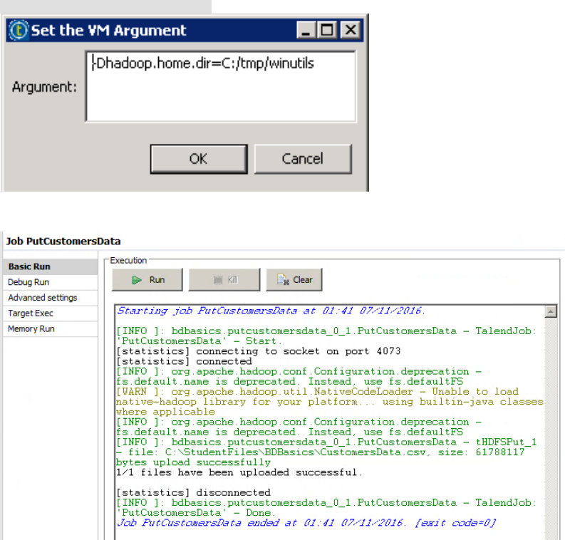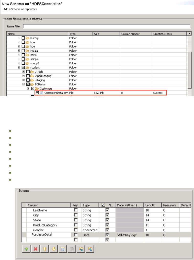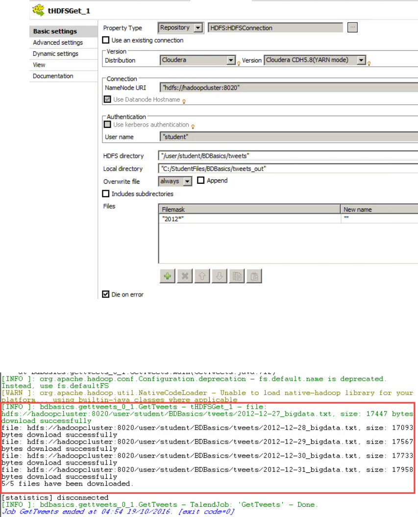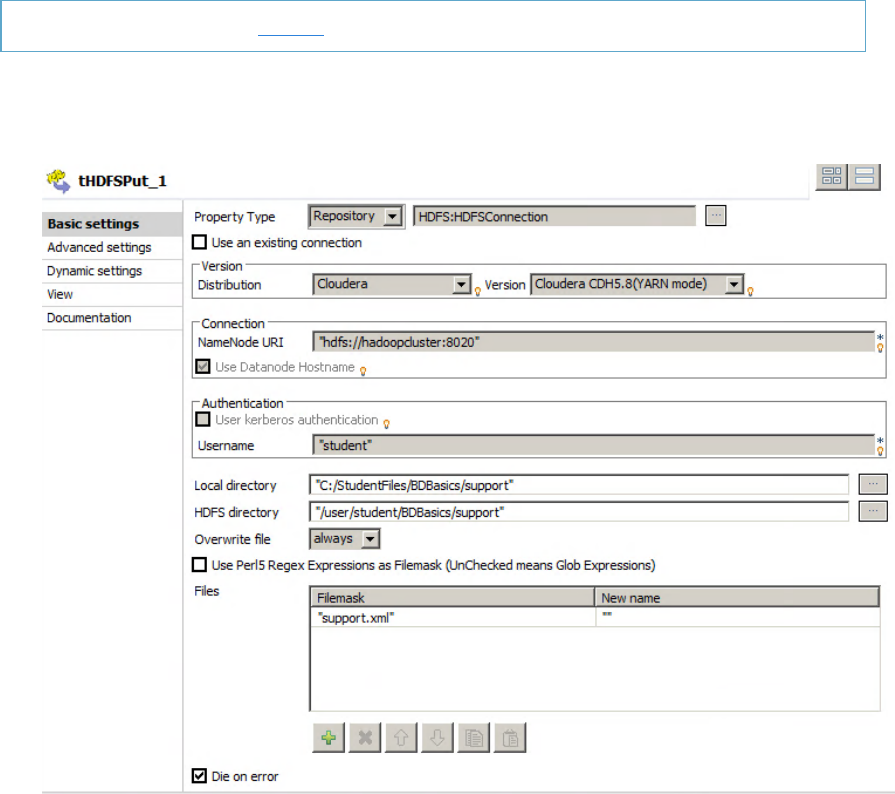 Configure tHDFSOutput to write the results in the /user/student/BDBasics/CustomersDataOut_MR folder.