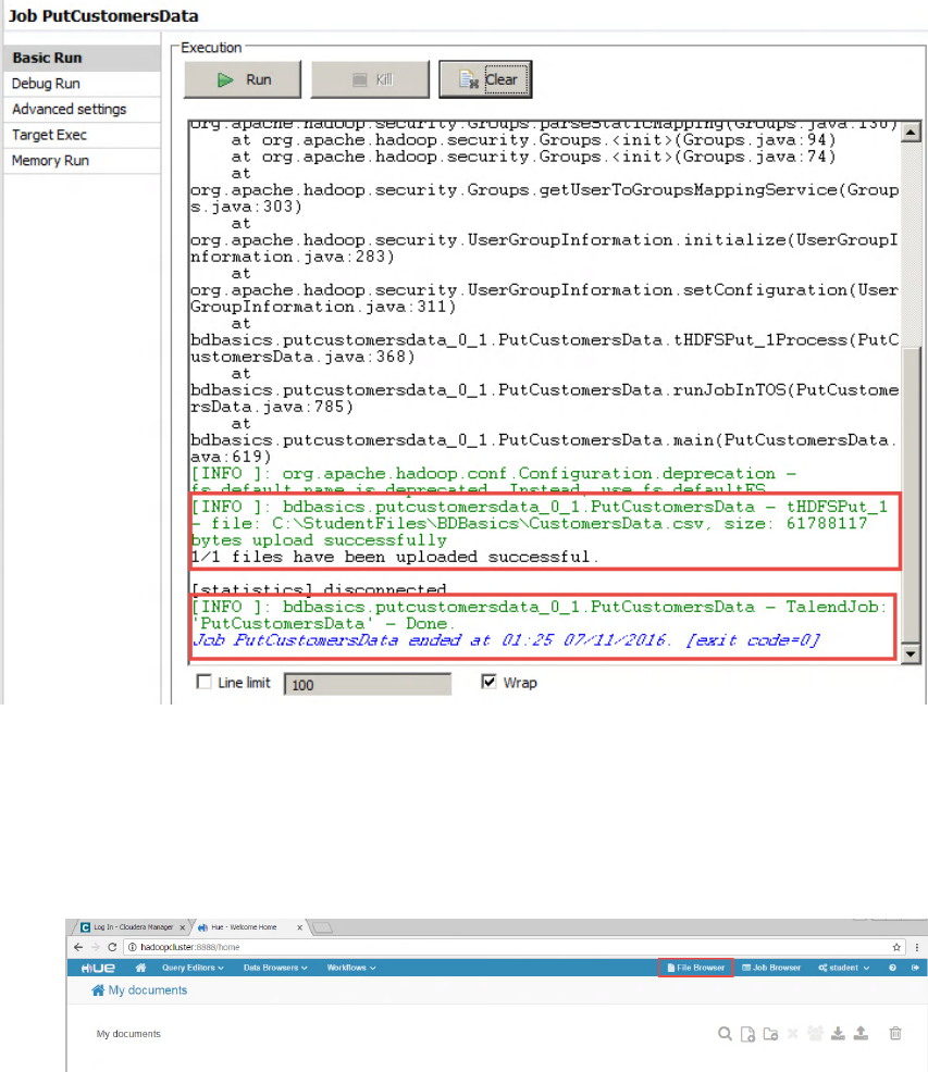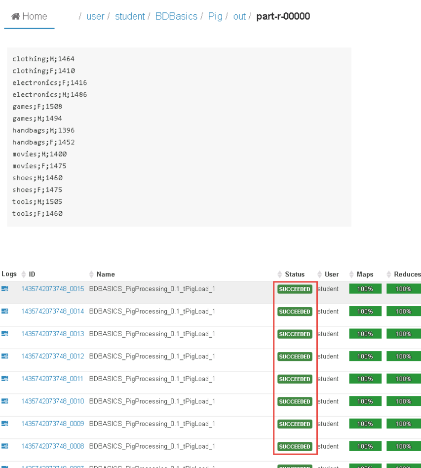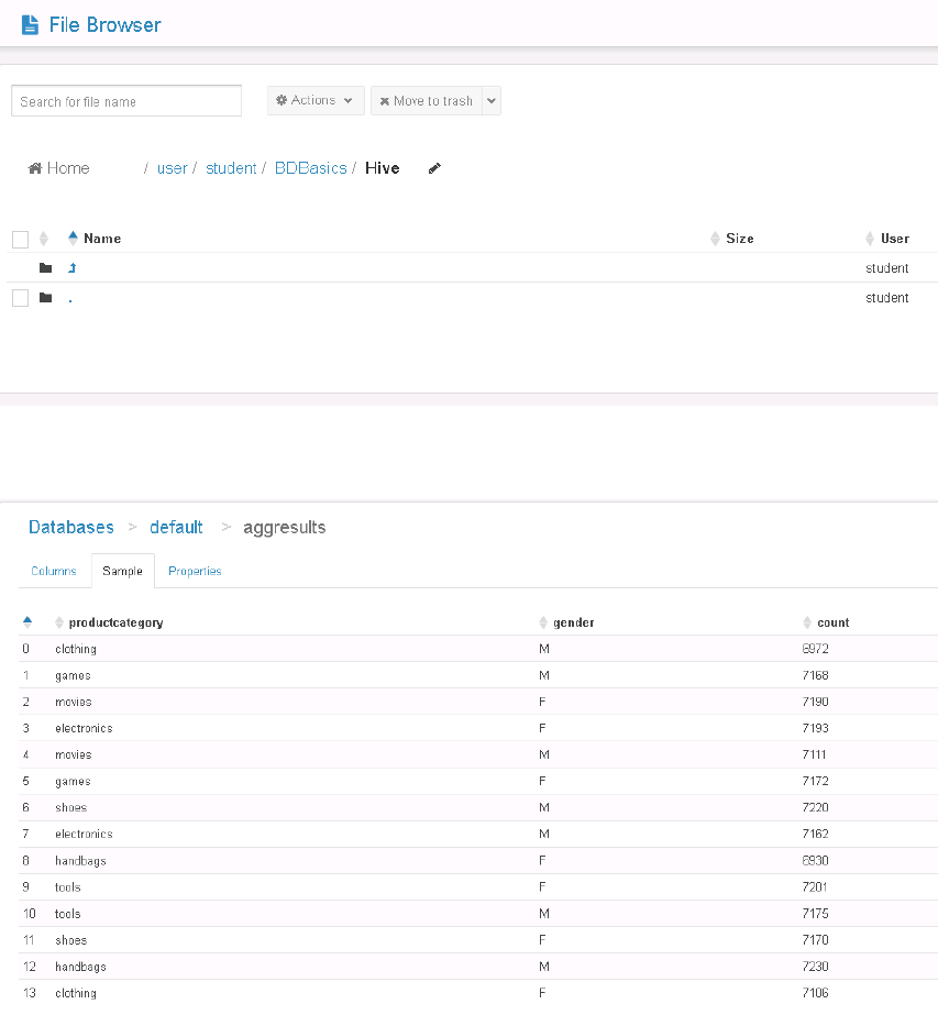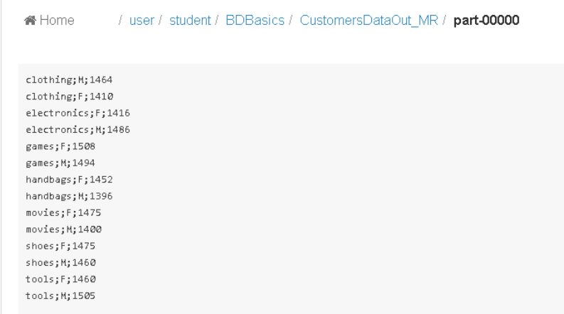 b. Using the File Browser in Hue, check the results saved in the /user/student/BDBasics/CustomersDataOut_