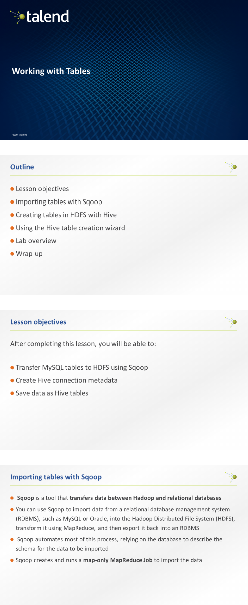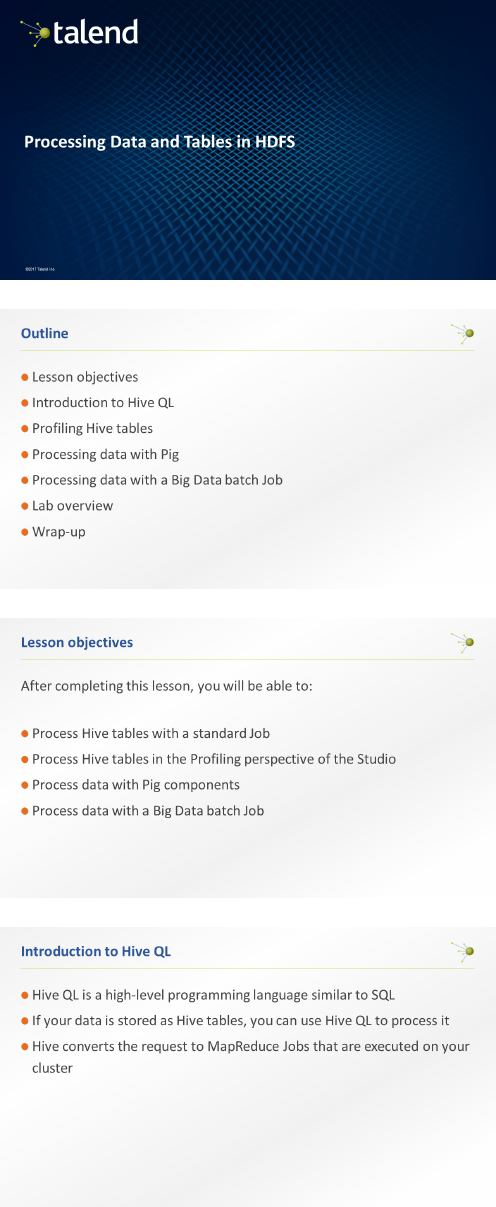 more about Big Data Batch Jobs, the Talend Big Data Advanced training will give you an overview of real life use cases using Big