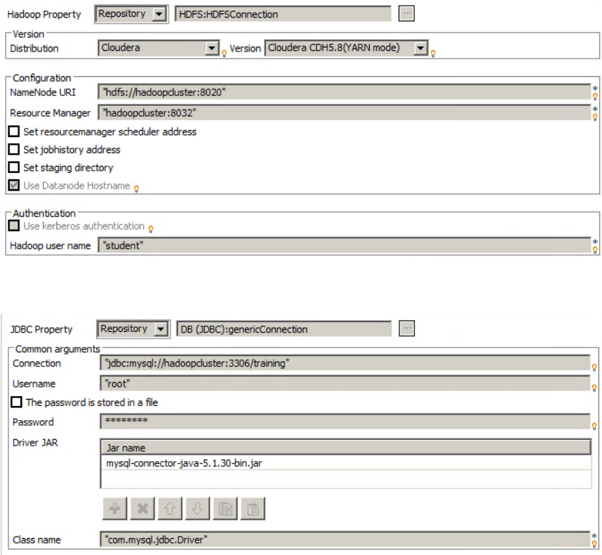 As the configuration has been retrieved from a tHDFSInput component, some configurations are missing, because they