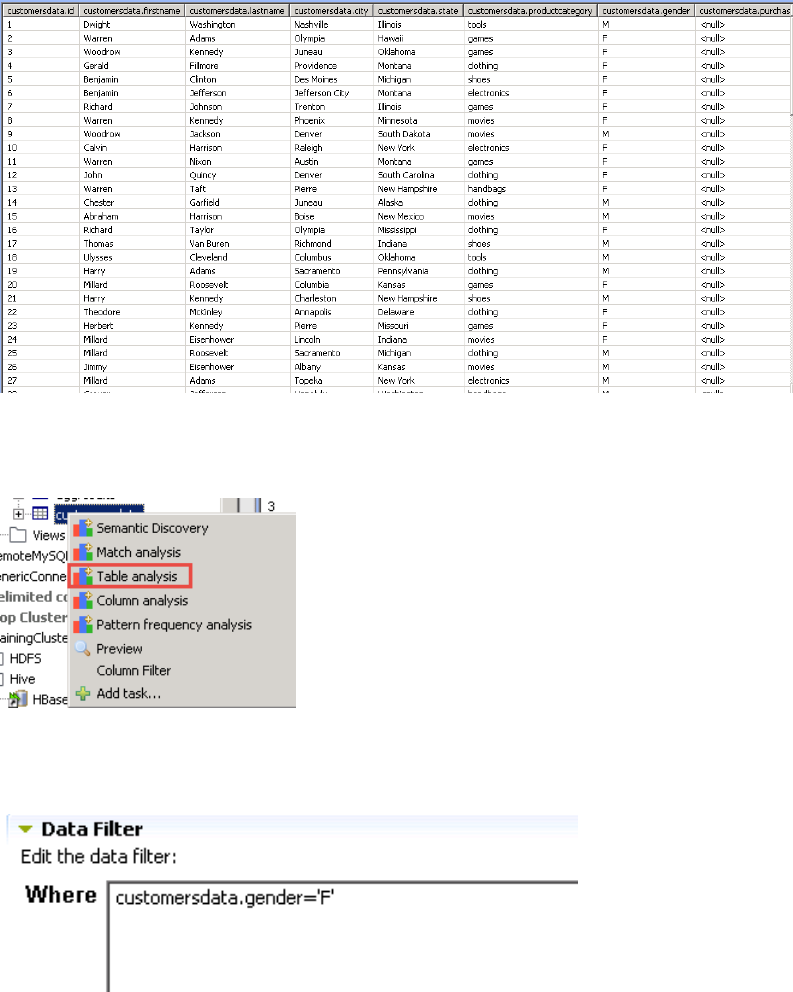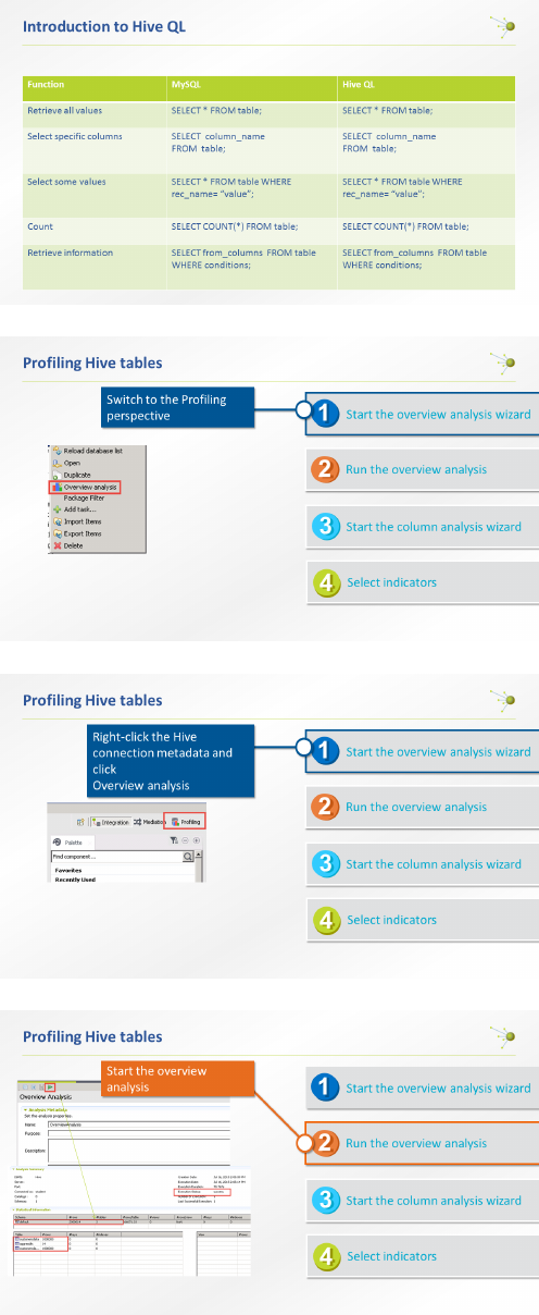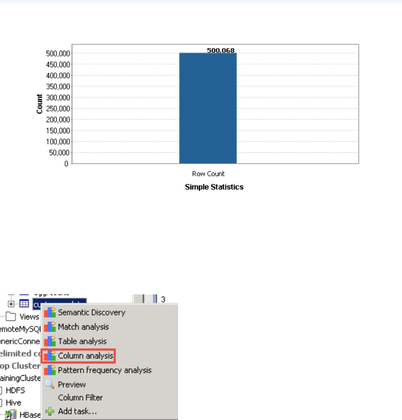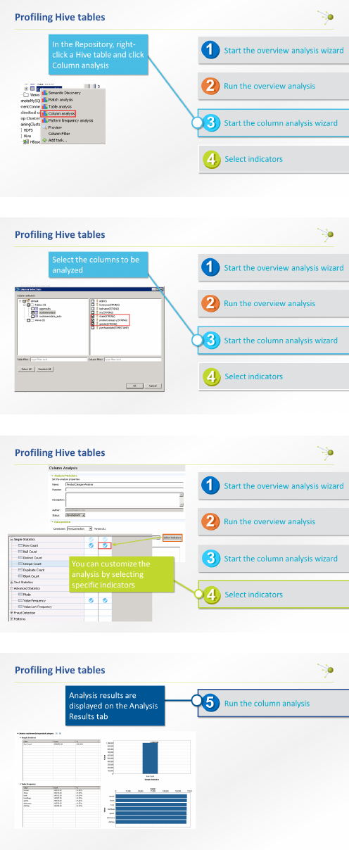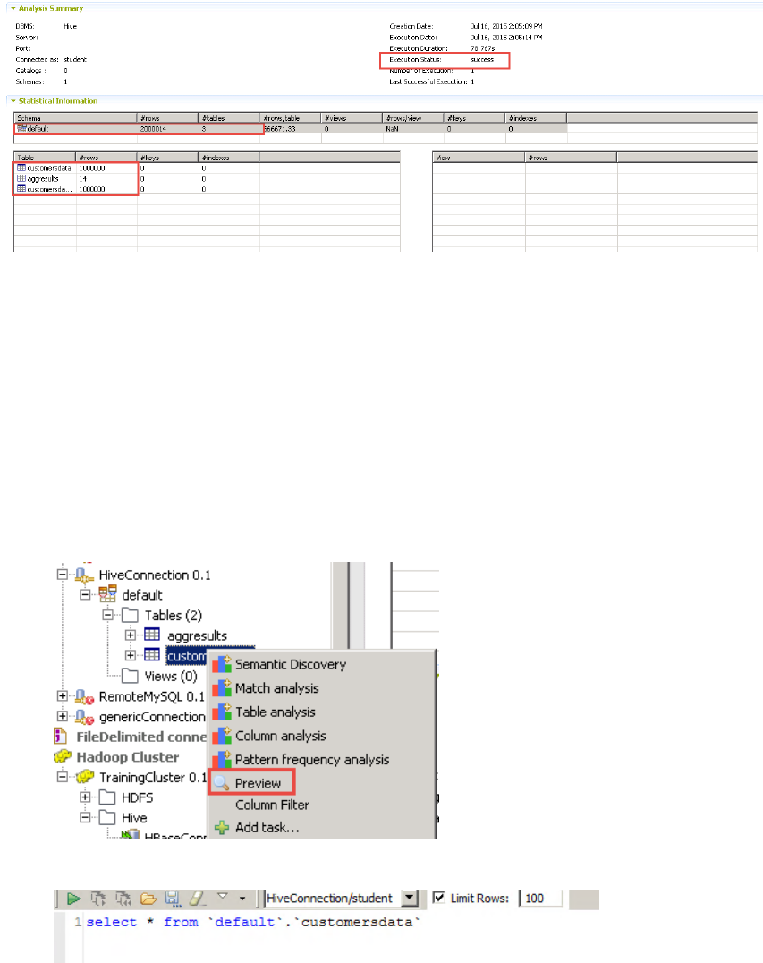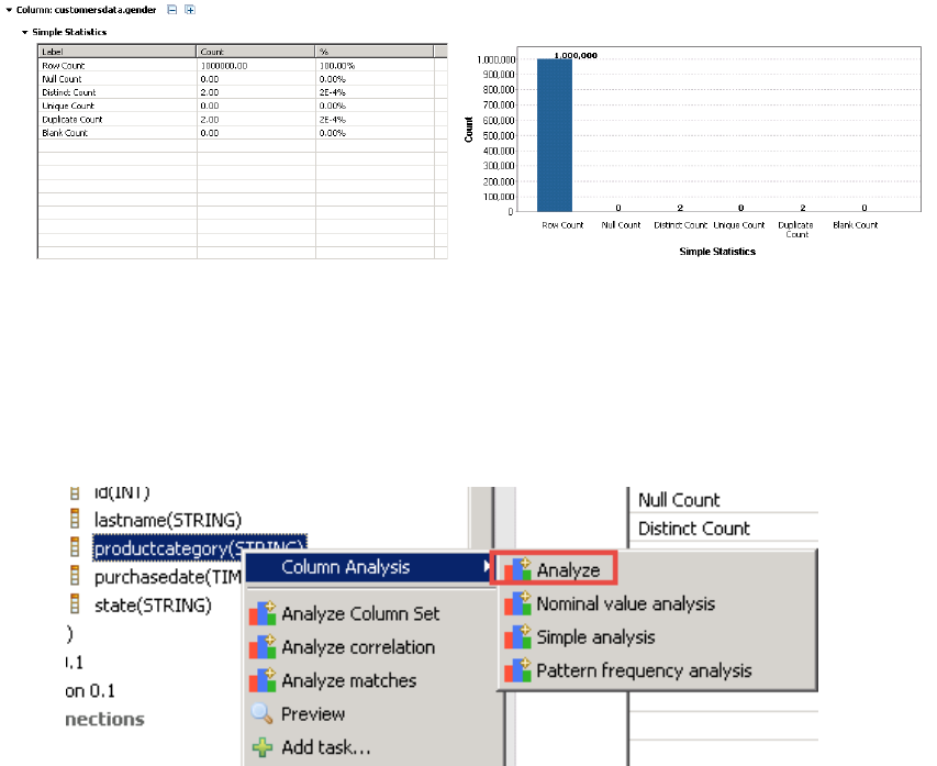 Next, you used the Profiling view of the Studio to perform different levels of analyses. You started at the connection level, moved to