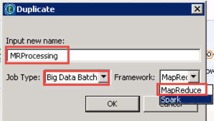 Using the Studio, you can convert a standard Job to a Big Data Batch Job, and choose between a Map Reduce or Spark framework.