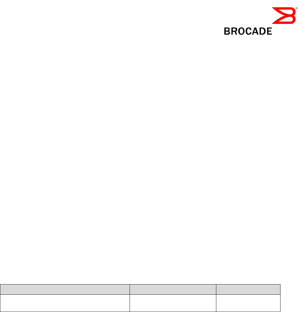 ADX, AnyIO, Brocade, Brocade Assurance, the B-wing symbol, DCX, Fabric OS, ICX, MLX, MyBrocade,