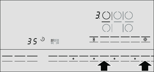 - 2. Touch the Timer key twice. The indicator for the desired element lights up. r and min appear, and ‹‹ lights up on the Timer display.