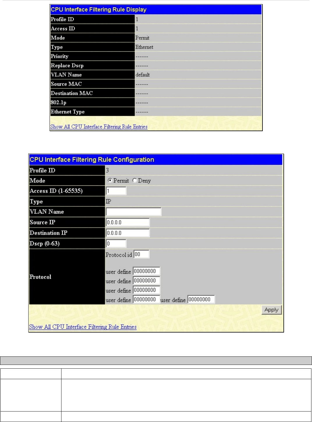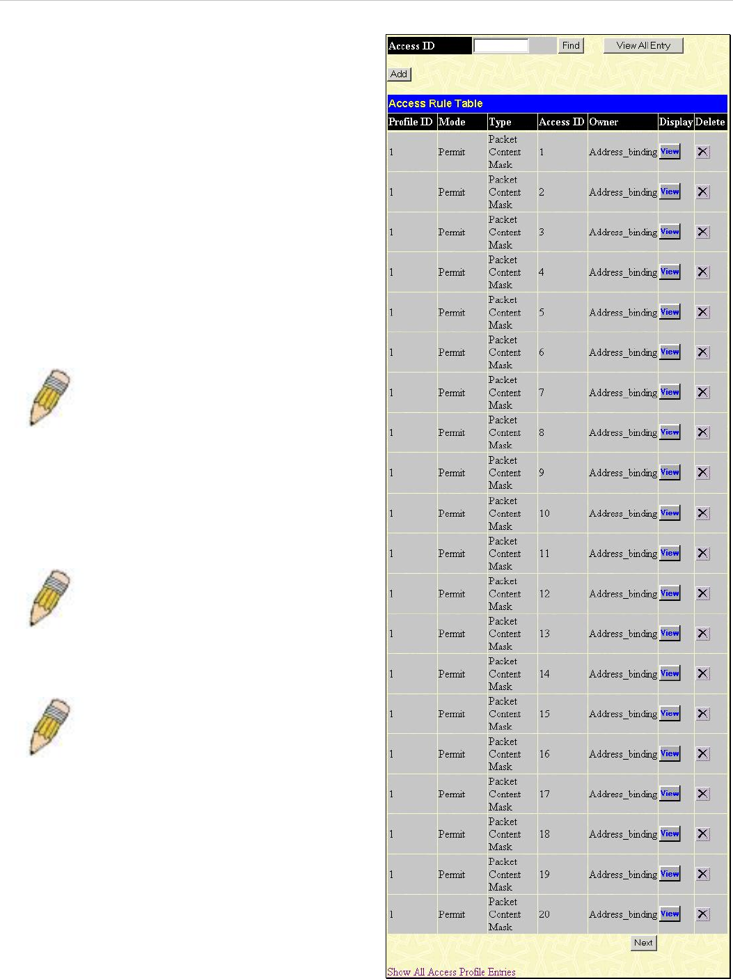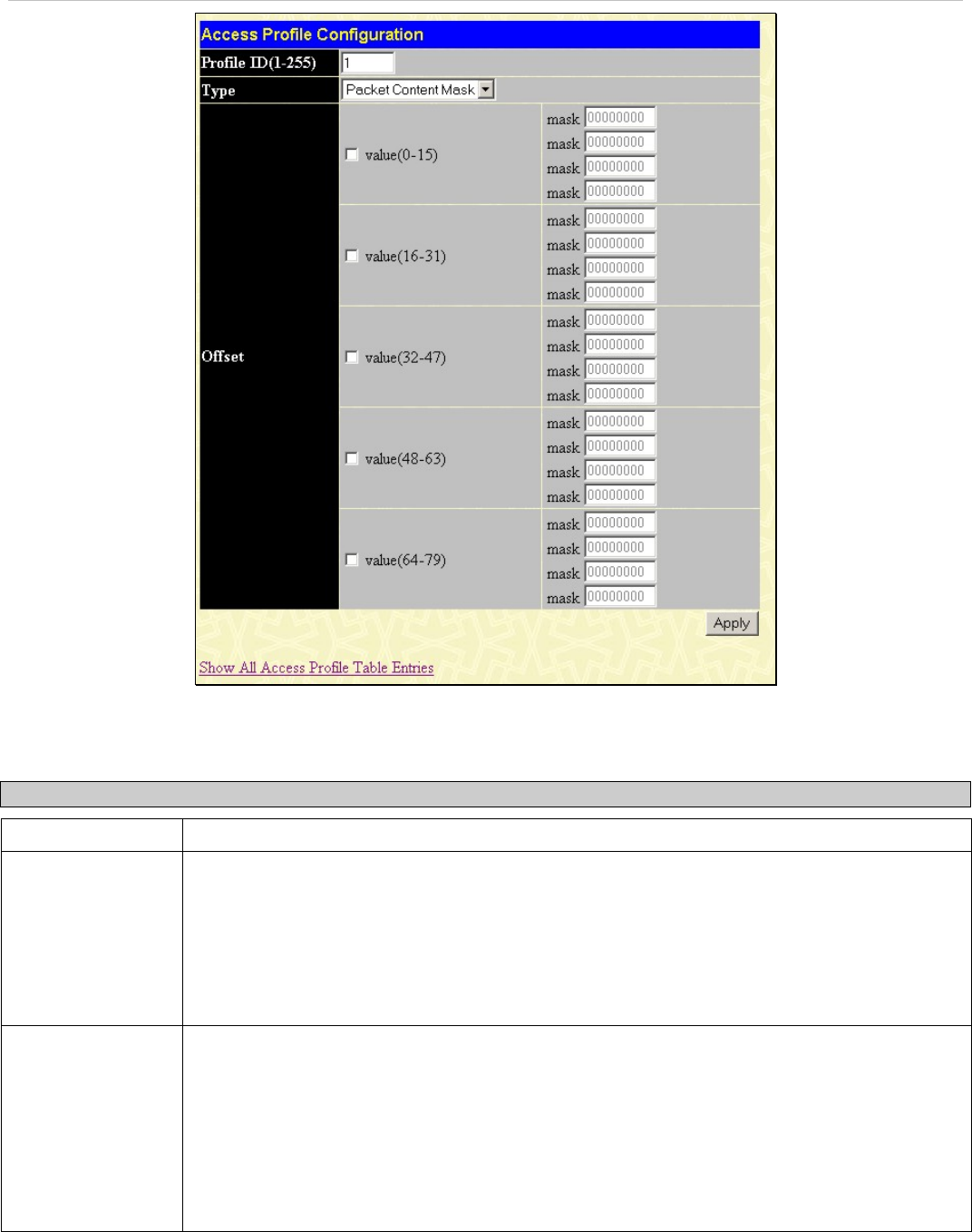 - Access Profile Table