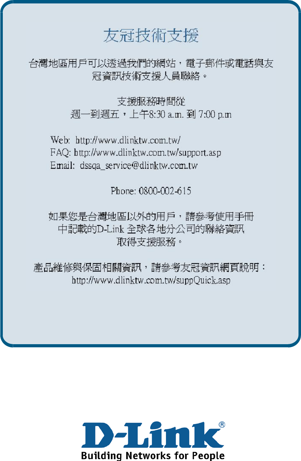 URL: www.dlinktw.com.tw